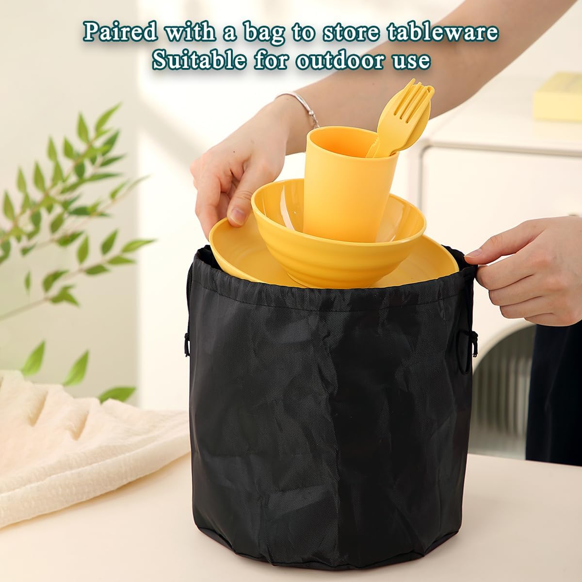 4. Dishwasher Safe and Easy to Clean: After a delicious meal in the great outdoors, cleaning up is a breeze. The entire kit is dishwasher safe, saving you time and effort. Simply toss the plates, cups, and utensils into the dishwasher for a quick and thorough clean, or wash them by hand with ease.