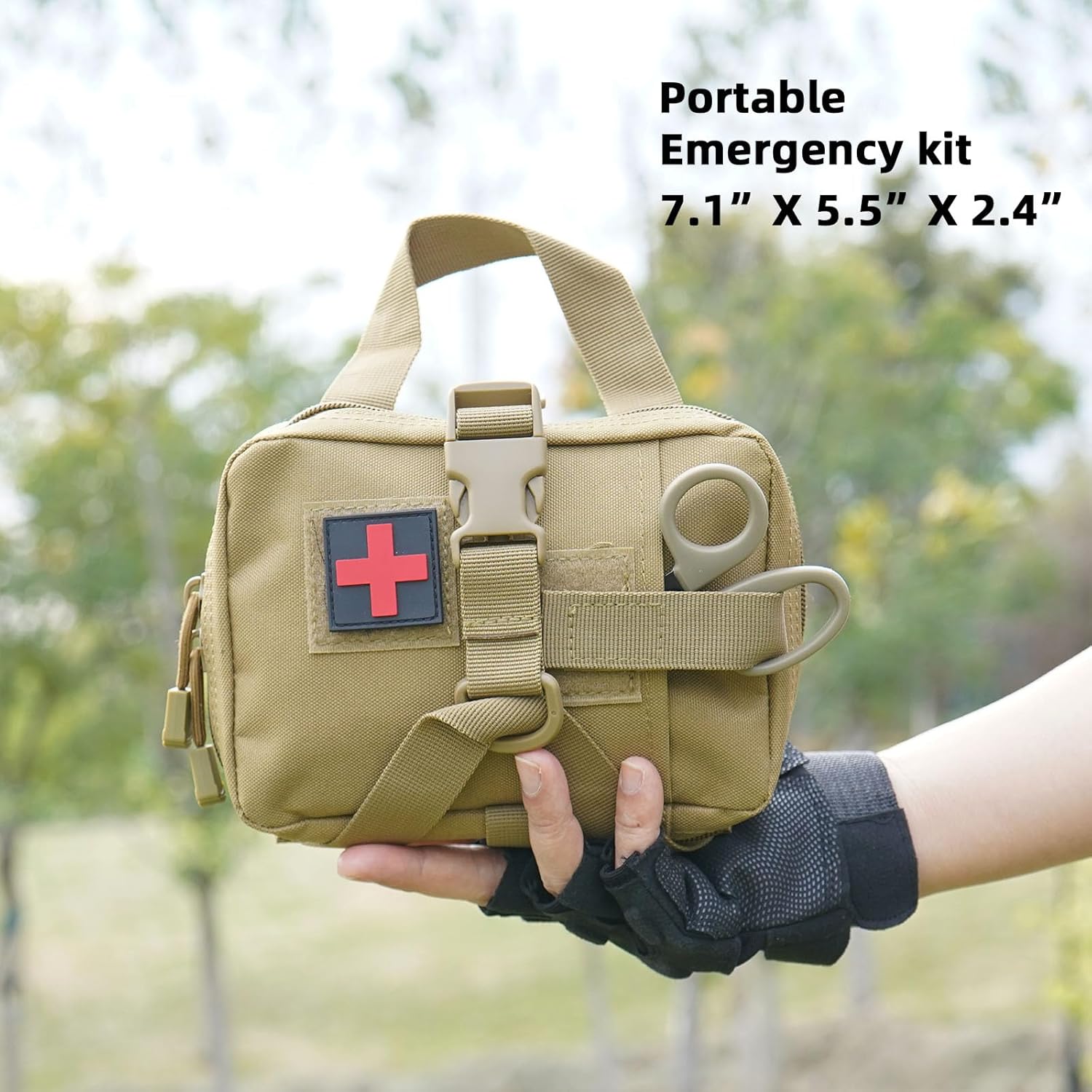 It is convenient to use and carry. The MOLLE attachment straps on the back allow it to be connected to tactical vests, belts, chest rigs, and backpacks. The car first aid kit is also easy to carry. The tactical first aid kit features a hook-and-loop design on the back, enabling quick access in emergencies