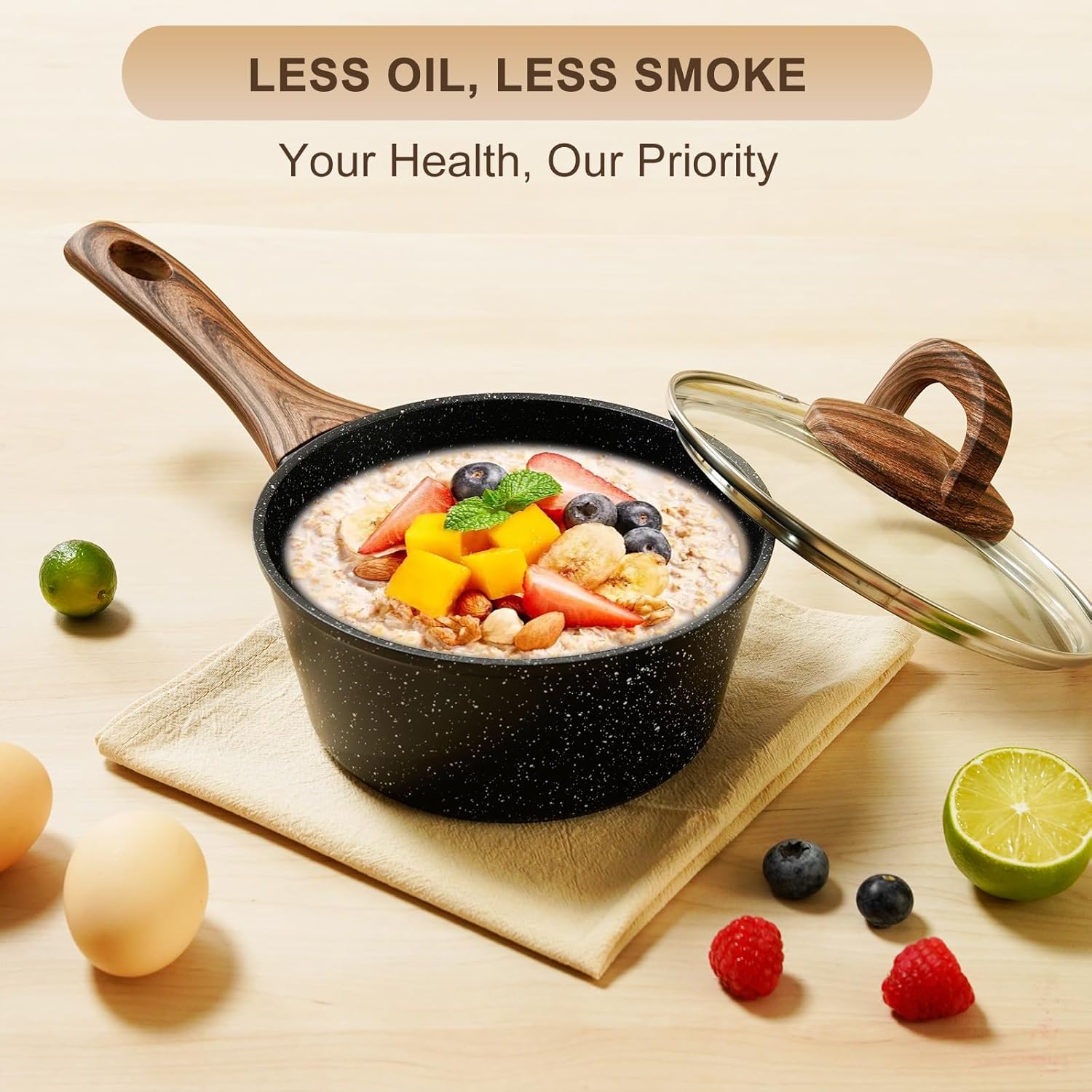 HEALTHY GRANITE NON-STICK COATING: Superior granite coating for smooth, ultra-non-stick cooking; food slides off effortlessly without sticking. Free of PTFE, PFAS, PFOA, PFOS, APEO, lead, cadmium and other toxic substances that can leach into food.