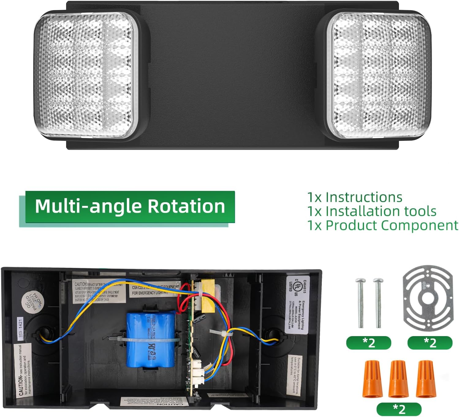 【Security First】-Our black emergency lights have two adjustable LED Ultra-bright lamp heads, providing ample lighting at multiple ranges. Emergency lights become your safety savers when there are power outages, fires, sandstorms, storms.or black Commercial Emergency Light Fixture from accidents or natural disasters.