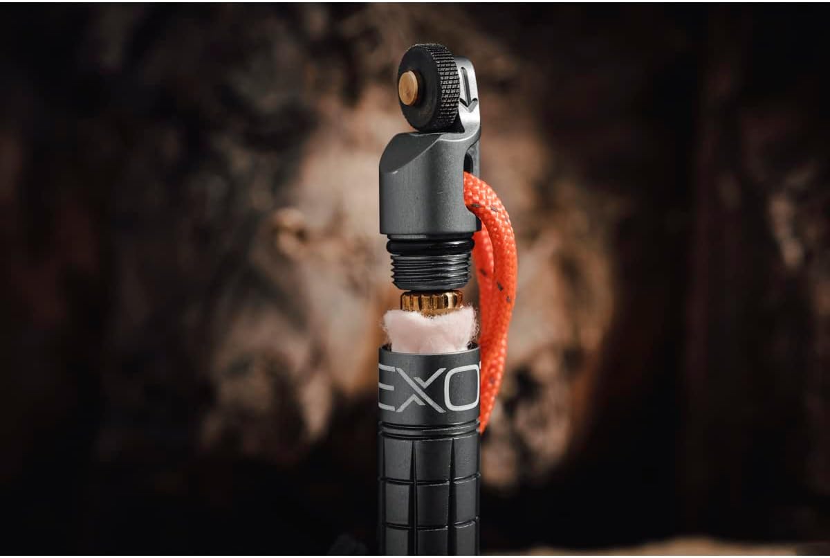 An o-ring in the flint retaining screw and an o-ring in the tinder capsule ensure that your tinder will stay dry and ready to use.