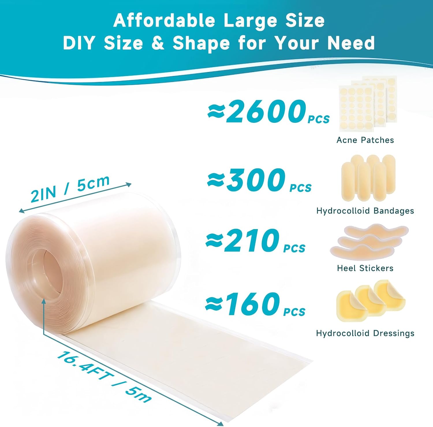 Customizable Sizing: Easily cut this versatile hydrocolloid bandage roll to your desired dimensions, offering personalized coverage for blisters, acne, minor burns, and abrasions.