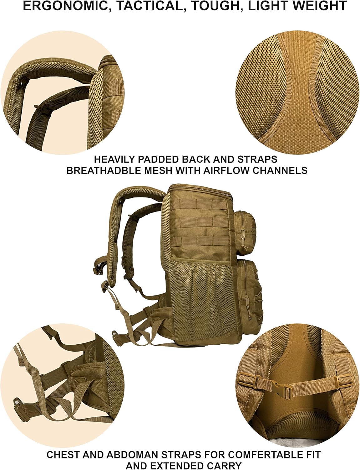 ERGONOMIC, TACTICAL, TOUGH and LIGHTWEIGHT: Specifically made for long hikes and outings. Includes breathable, heavily padded mesh back pads, reinforced padded straps with chest and abdomen securing straps. This design keeps the cooler backpack comfortably in place even after many hours of walking. A molle system is included for any supported attachments. A pair of straps under the backpack allow for attaching blankets, mats, extra shoes, etc.