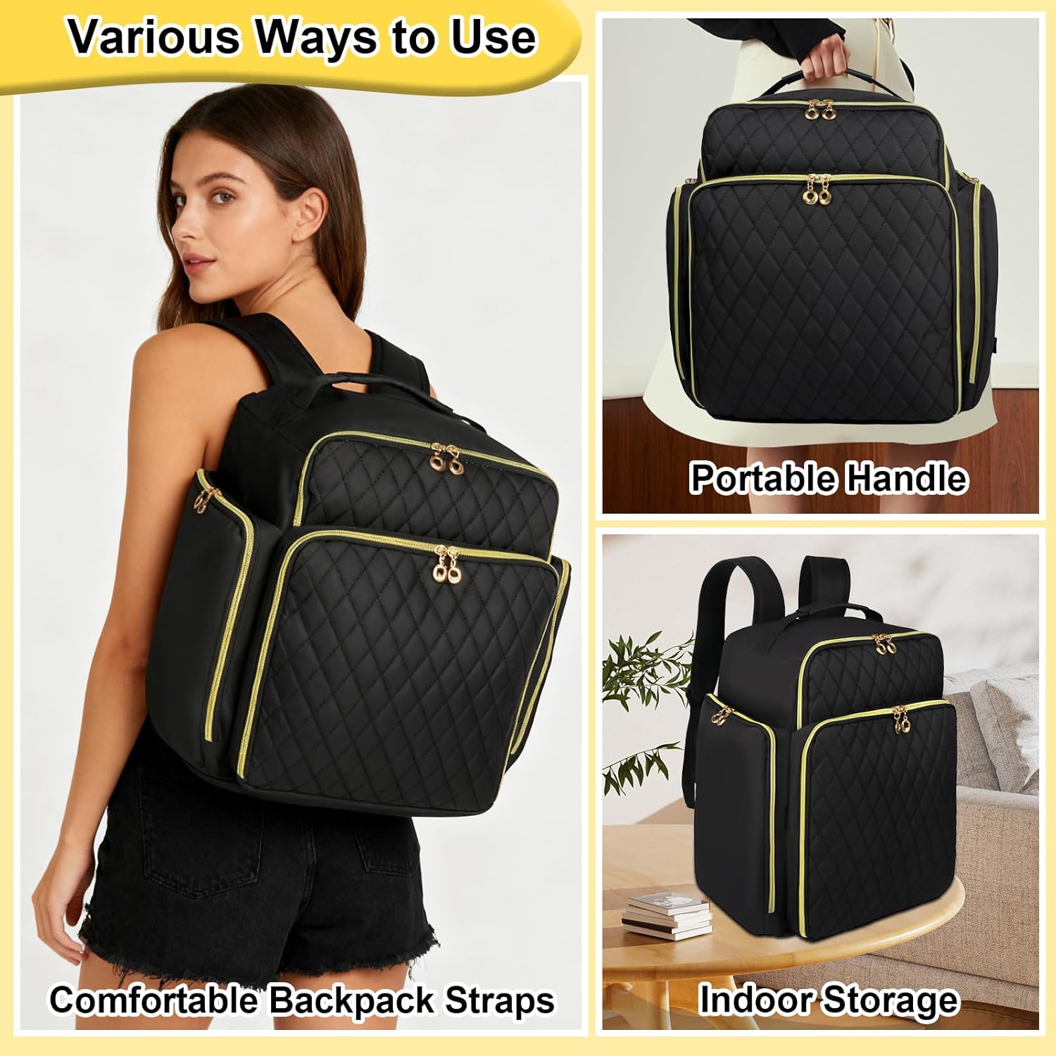 【Durable 600D Oxford Fabric of Nail Backpack】Crafted from durable and water-resistant 600D Oxford fabric, this professional nail technician backpack features 3 soft sponge compartments for crush-proof bottle protection. The sturdy design and elegant quilted texture maintain a structured shape, while golden zippers ensure smooth access, keeping your entire manicure kit organized and secure on the go.