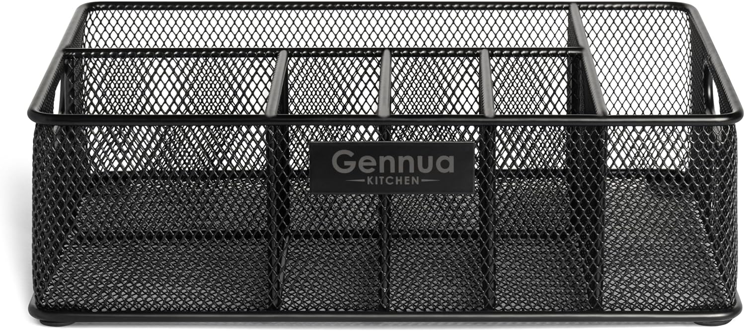 Premium Black Iron Mesh Construction: Forget flimsier paper plate holders. Our skillfully crafted plate and utensil caddy features thick, sturdy iron mesh, built to withstand daily wear & tear.