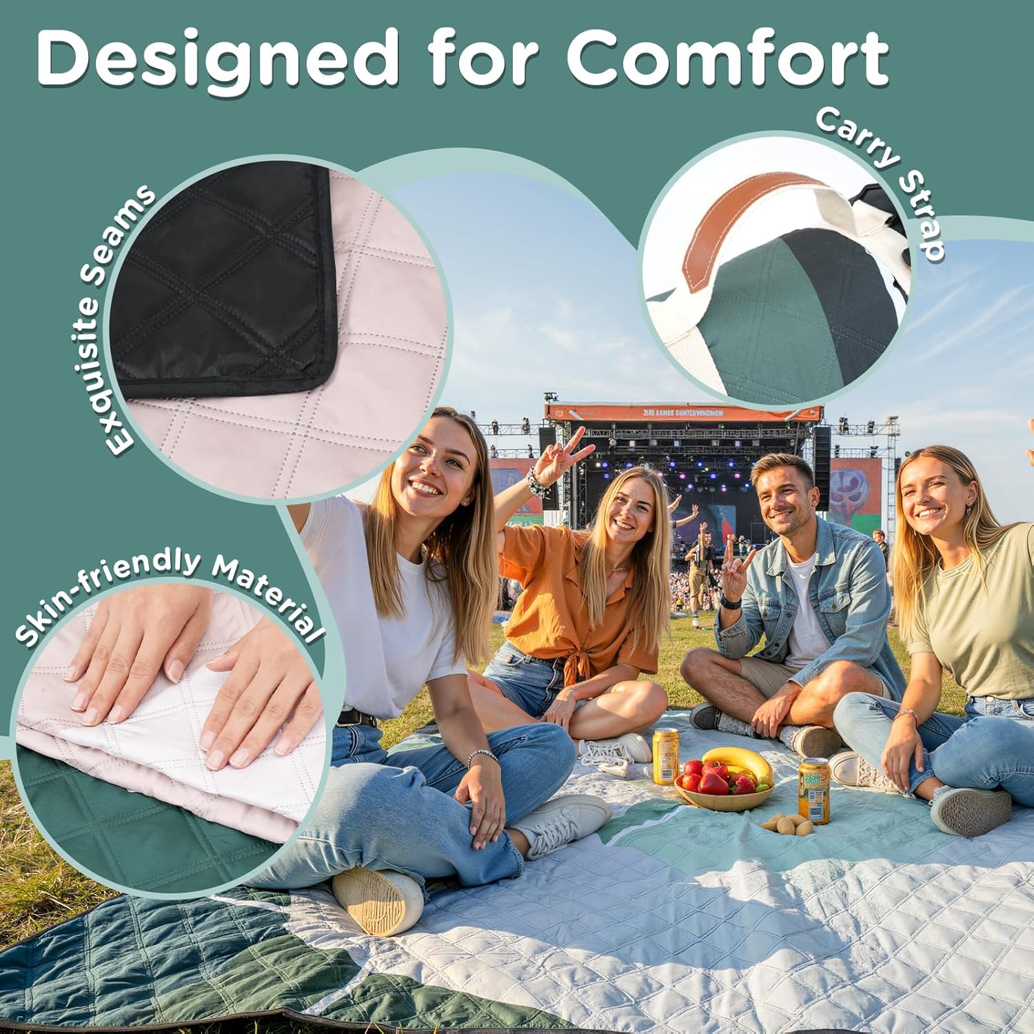 【Multi-Use】Waterproof Picnic Blanket Beach Outdoor Camping Mat Extra Large Foldable Cute Big Travel Essential Accessories Gift Park Patio Lawn Garden Grass Ground Play Music Festival Concert Must Have