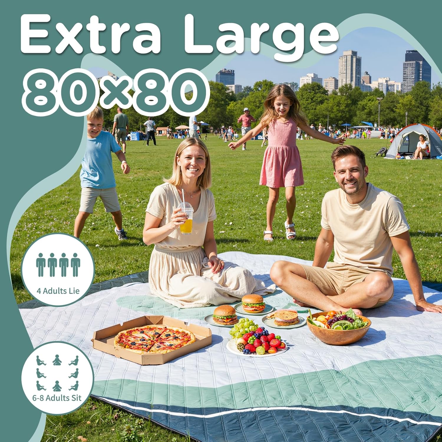 【Extra Large for 4-8 adults】The size of Rychic picnic blanket is 80″x80″, making picnic blankets perfect for outdoor blankets. This large blanket comfortably accommodates 4-8 people or let 4 lie down, making it a good choice for camping blanket