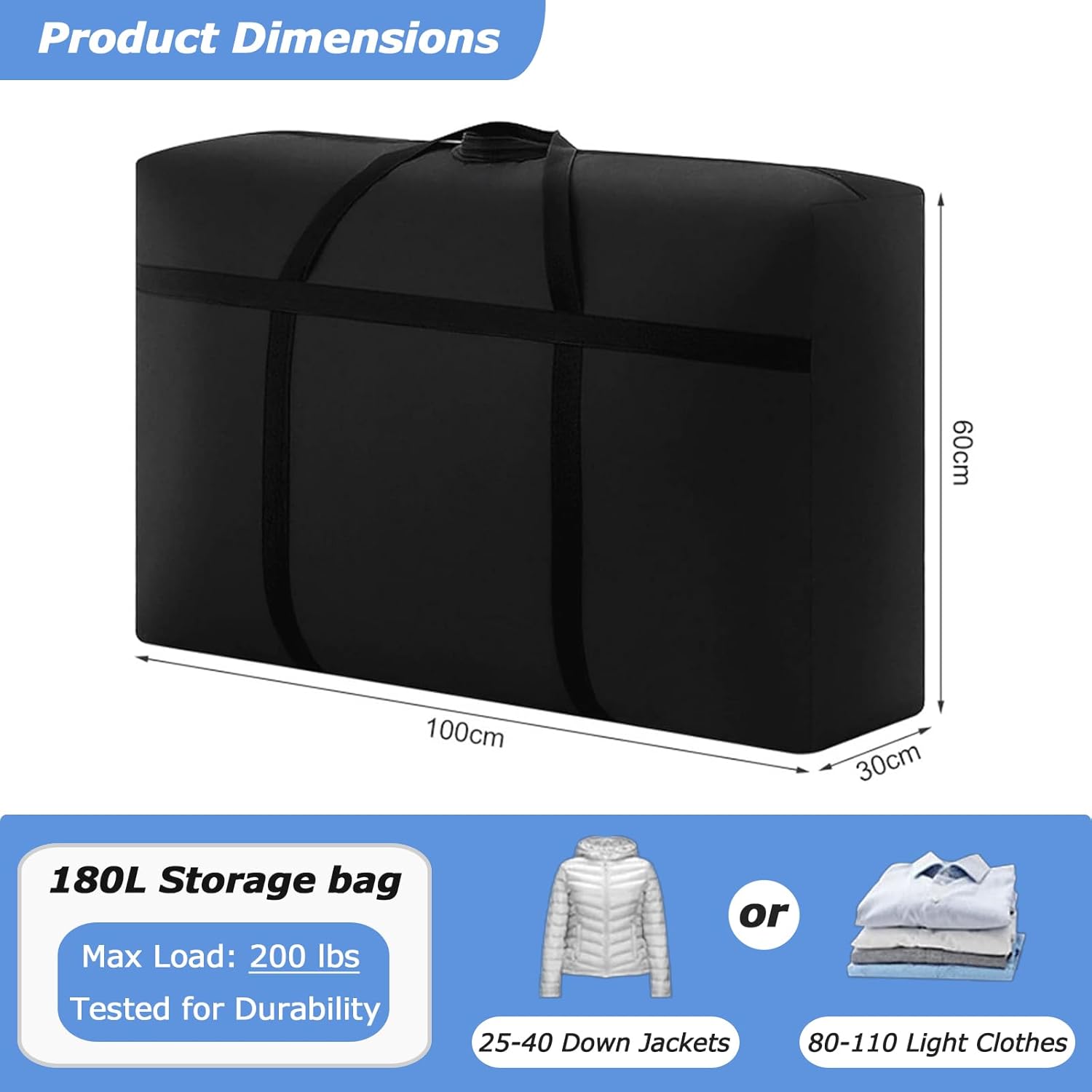 LARGE CAPACITY: Easily store and carry a large amount of bulky items with this heavy-duty storage bag. Measuring 100x60x30 cm/39.4×23.6×11.8 in (L x W x H), it provides ample space for your needs.