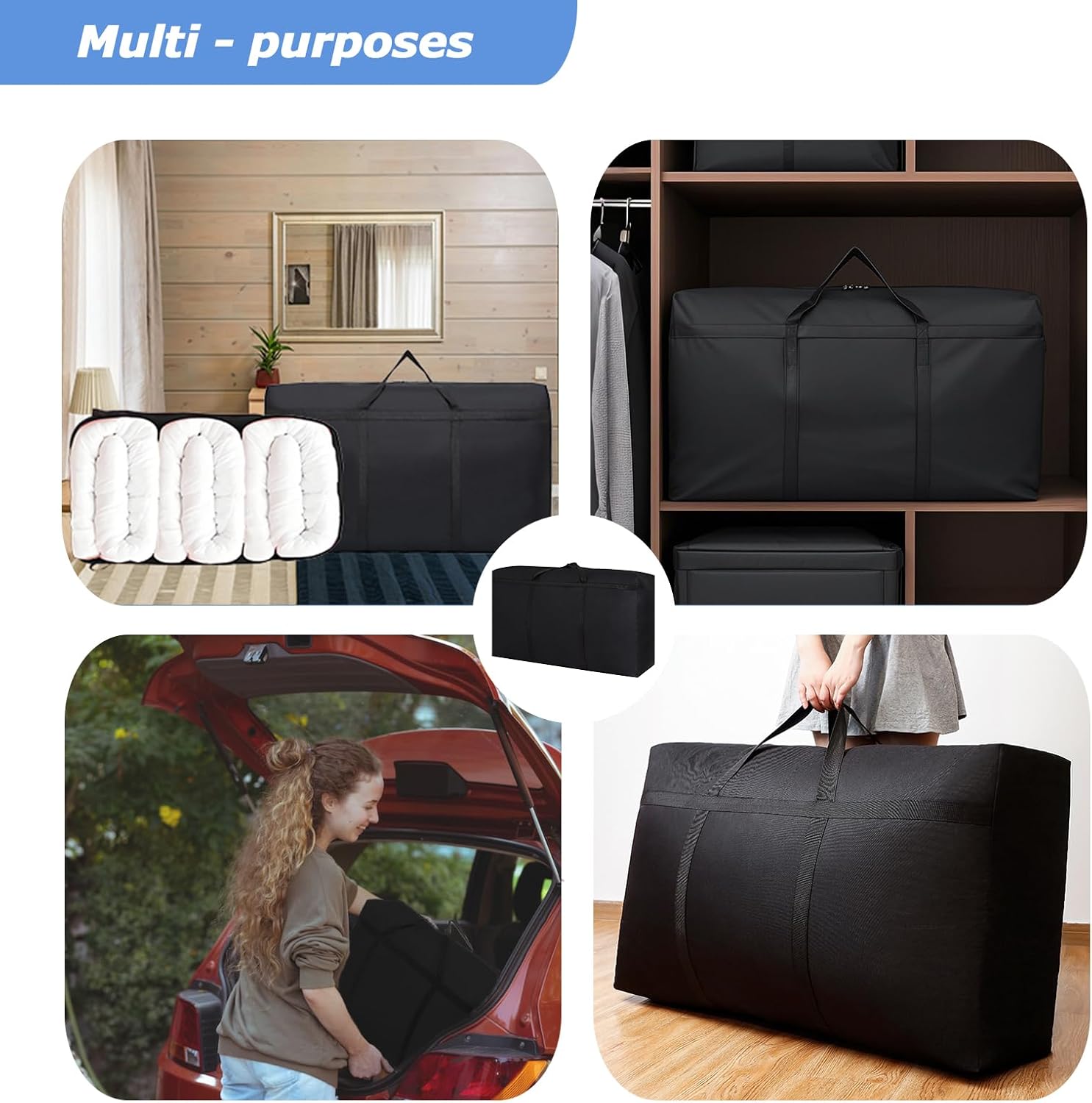 MULTI-USE STORAGE BAG: Ideal for any use, this heavy-duty storage bag can safely store your clothes, move bulky items, and carry things while traveling. Perfect for blankets, duvets, Christmas decorations, camping gear, college items, and more. It can also serve as a large travel duffel bag.