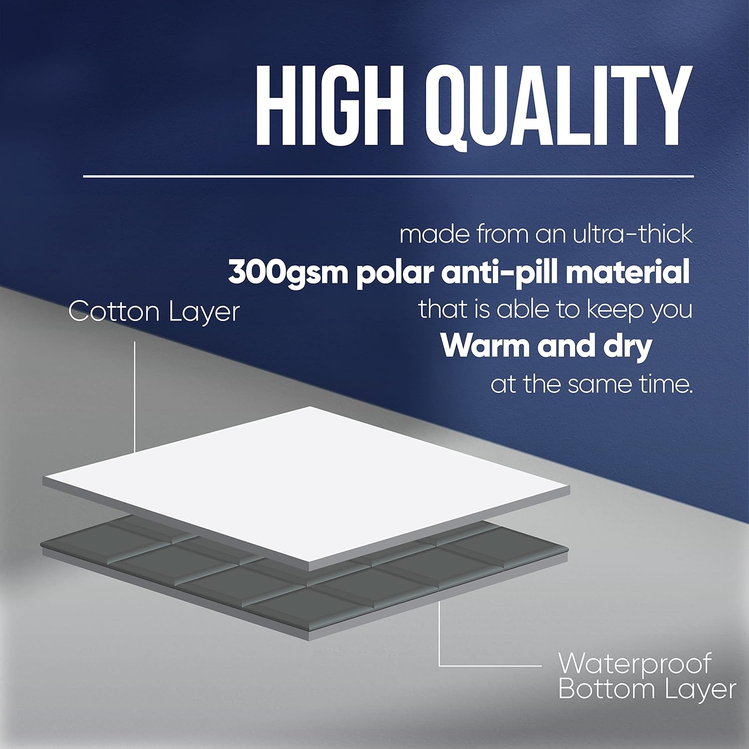 STAY WARM WITH THE ULTRA THICK 300GSM PREMIUM FLEECE: The blanket is made from an ultra-thick 300gsm polar anti-pill material that is able to keep you comfortable and warm at the same time. While other blankets are 200-250gsm and won’t be able to keep you warm in extreme conditions, at 300gsm the EverSnug Waterproof Blanket is the thickest fleece lined blanket on the market!
