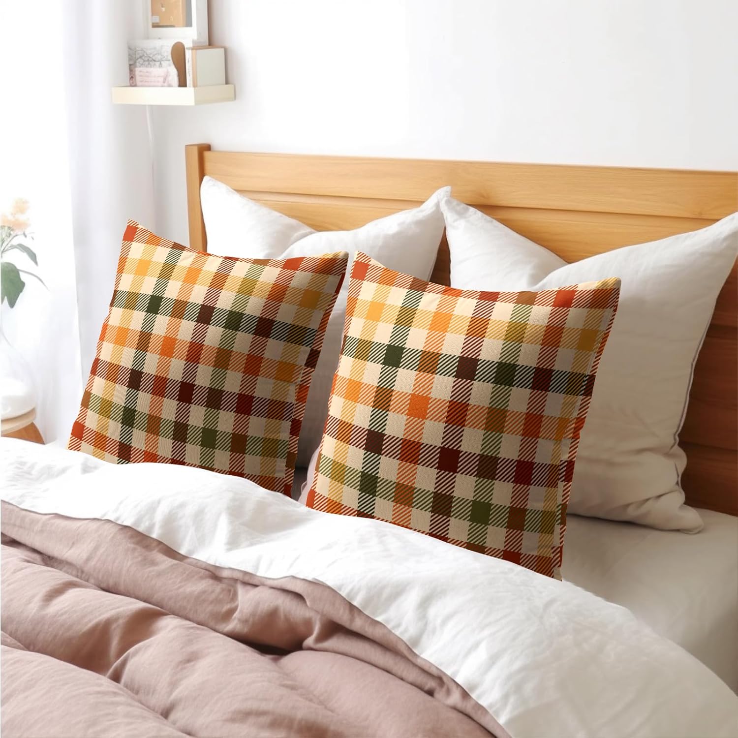 HIGH QUALITY MATERIAL: Our fall plaid pillow cover is made of high quality polyester material, sturdy & skin-friendly, no bleeding, fading or fraying issue.