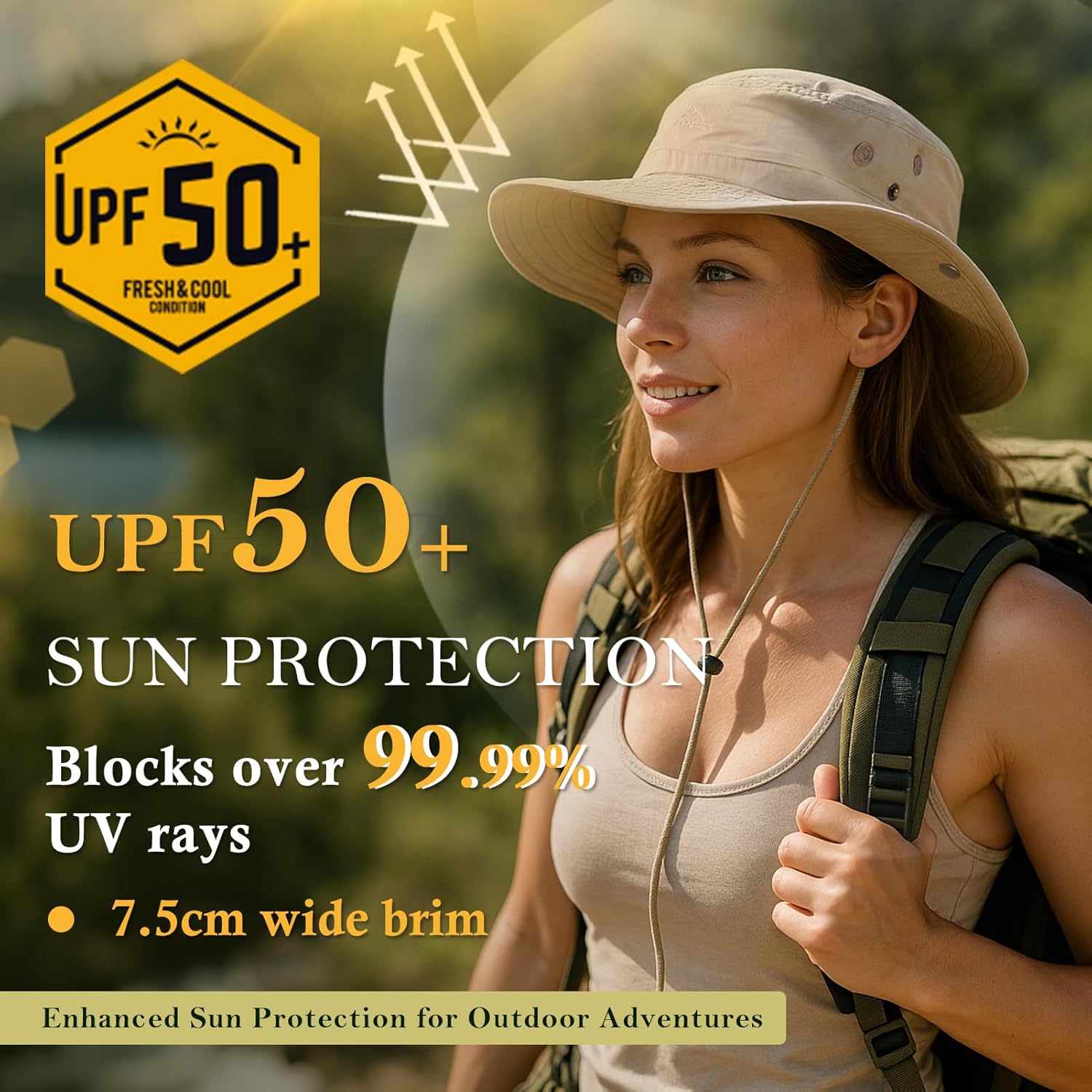 This hat provides UPF 50+ sun protection, blocking over 98% of harmful UV rays. It’s perfect for outdoor activities like hiking, beach trips, and gardening.