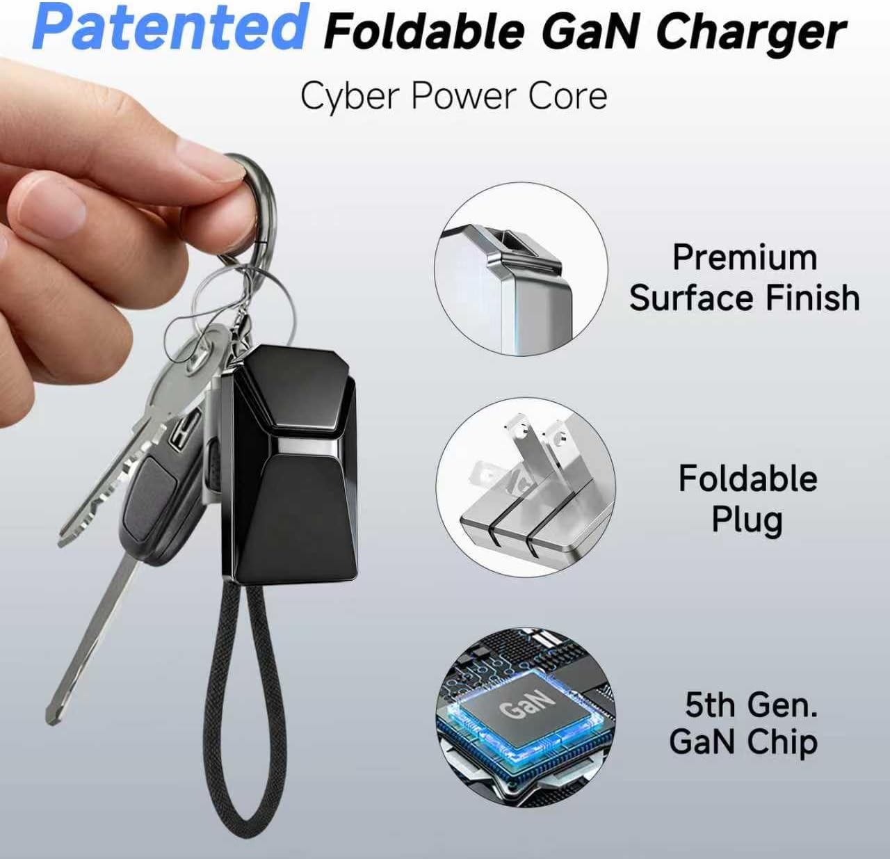 Cyberpunk Aesthetic Design : Inspired by cyberpunk, featuring angular edges and a metallic finish for a futuristic look. The included premium braided cables are not only durable but also designed to be used as lanyards, making your charger a stylish everyday accessory.