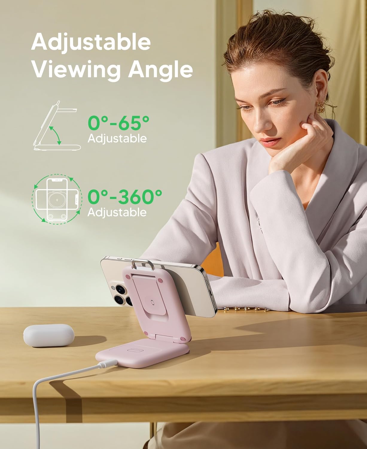 Foldable & Portable for Travel: Featuring a suitcase-inspired appearance, this wireless charger offers a distinctive and stylish look that seamlessly blends into various home or office environments, enhancing overall aesthetics. This foldable and portable mag charger can easily fit in your bag or suitcase, ideal for home, office, travelling, it provides fast and reliable power supply. A thoughtful gift for your loved one๏ผboy/girl friends and family.