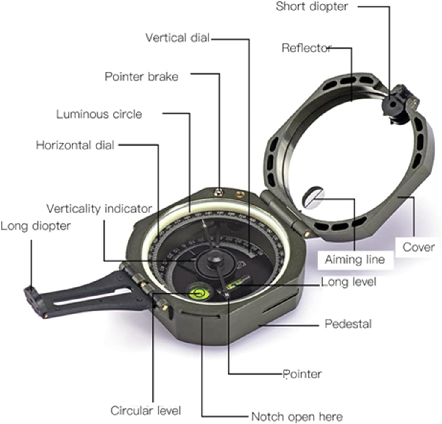 Clear and Easy to Read: The multifunctional geological compass adopts a clear dial, which is easy to read data quickly and suitable for use in various complex environments