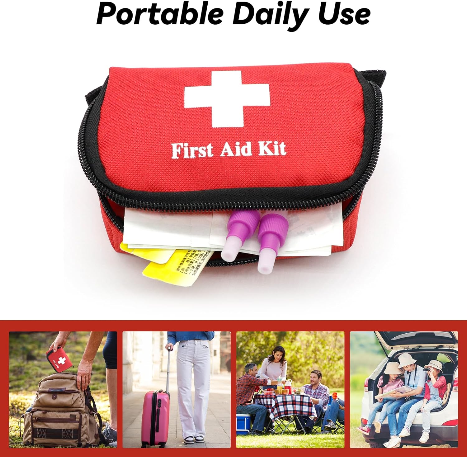 Home First Aid Bag is Suitable for most daily use or adventures, including homes, offices, cars, sports, boats, road trip, etc.