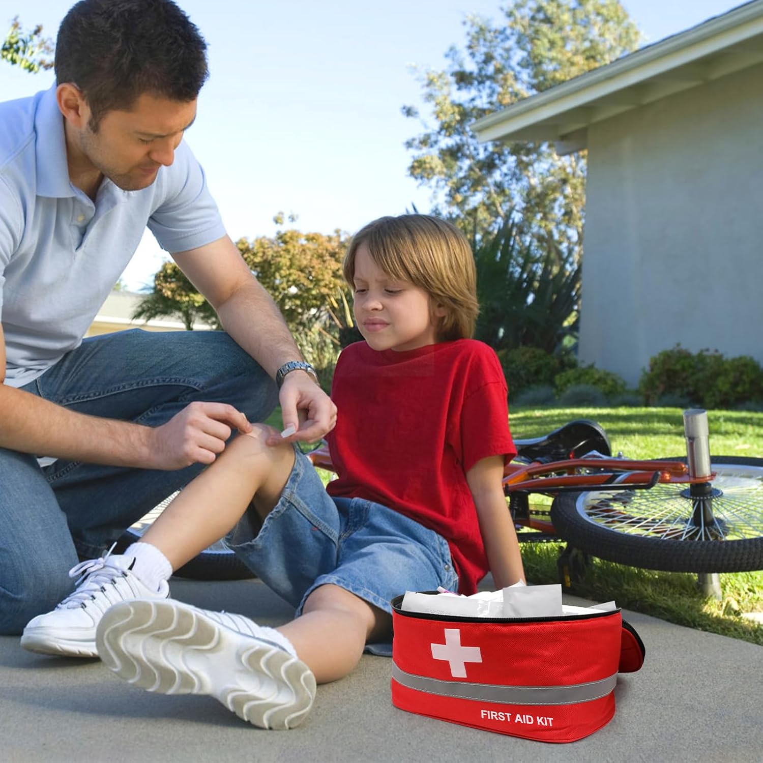 Camping First Aid Bag is Suitable for most daily use or adventures, including homes, offices, cars, sports, boats, road trip, etc. Reflective strip design, more noticeable at night.