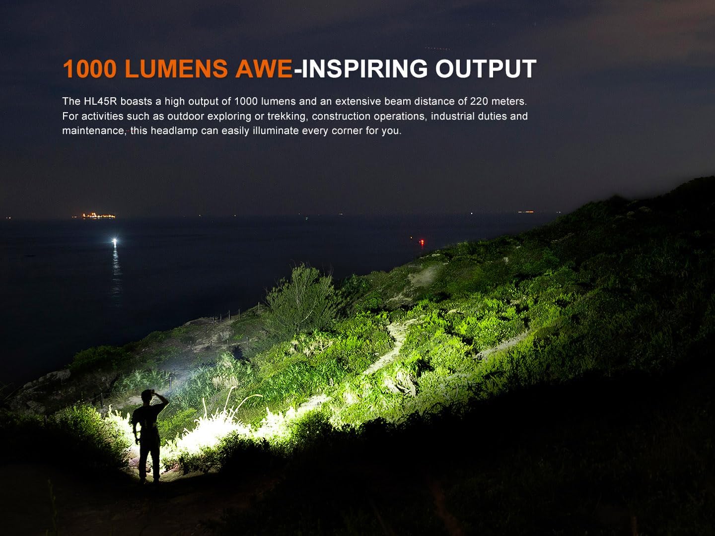 POWERFUL HEADLAMP – Delivers 1000 lumens and a 240 yards beam throw for tackling rugged terrain, industrial maintenance, or construction tasks.