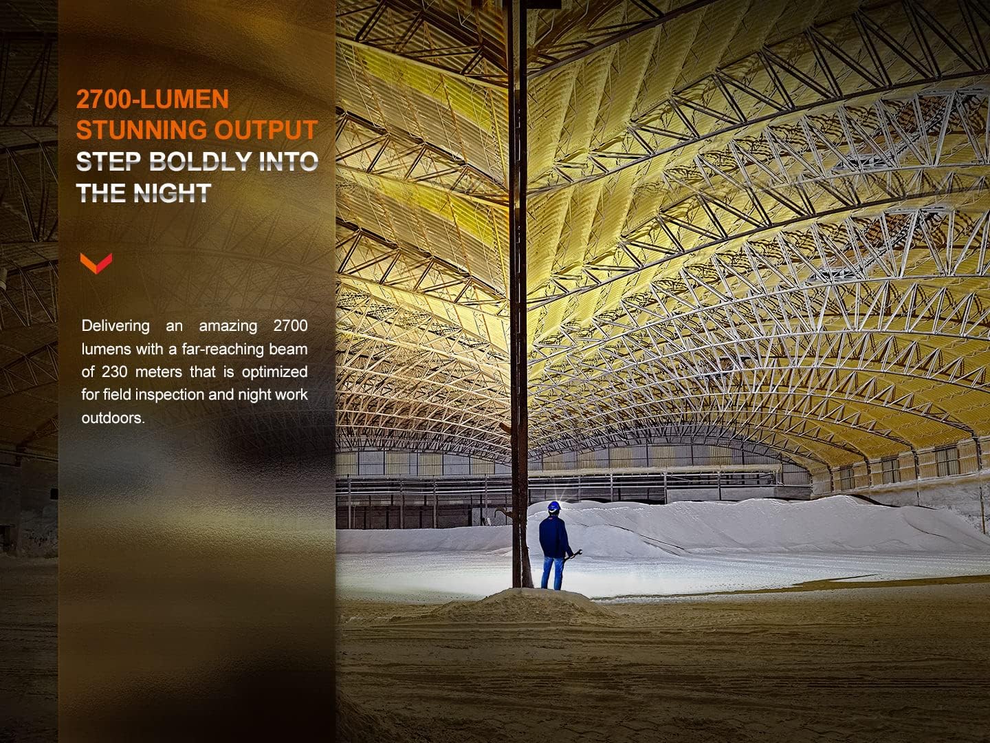 HIGH LUMEN HEADLAMP – The HM71R headlamp offers up to 2700 lumens of powerful spotlight illumination, capable of lighting objects 251 yards away. It also features a 500-lumen flood light for wide-angle illumination.