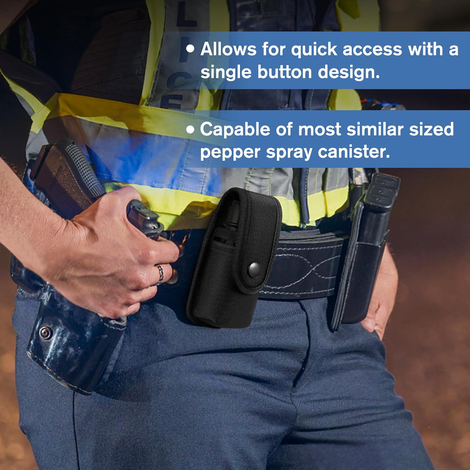 A pepper spray pouch can not only hold duty gear essentials for police, sheriffs, cops, law enforcement, corrections/prisons/public safety officers, armed guards, armed security, prison guards etc., but also suitable for personal protection, and self-defense.