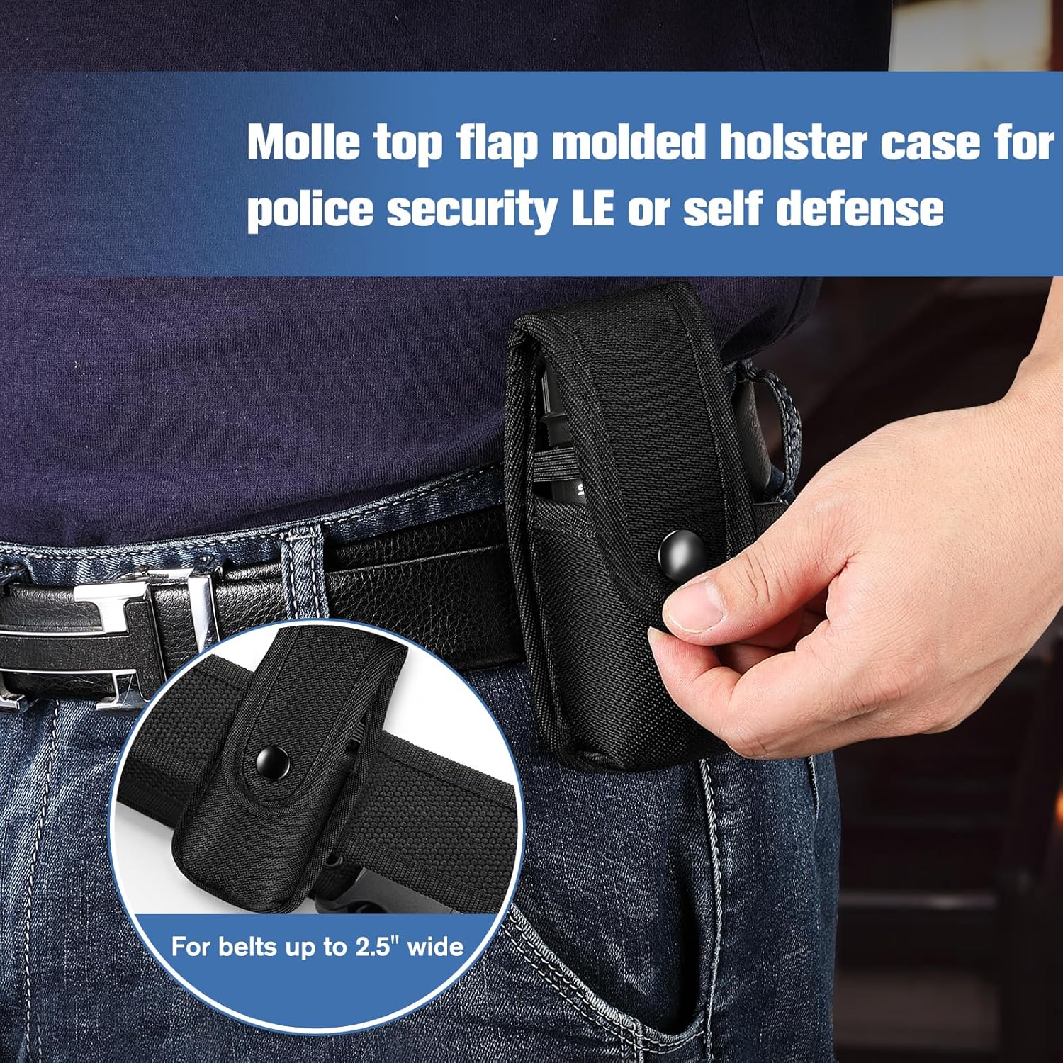 High-quality pepper spray holder was built for duty belts and MOLLE attachments, ensuring that your equipment is secure but readily available when you need it most. The belt loop on the back can be attached to most duty belts up to 2.5’’ in width.