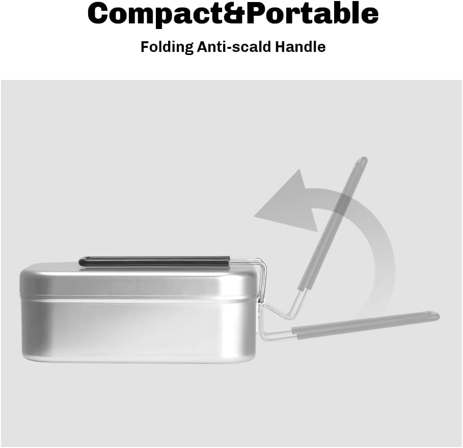 CONVENIENT HANDLE: The handle is foldable and coated with heat-proof silicone. It’s compact enough for storing in your backpack and durable enough to hold on the the whole stuff with foods contained.
