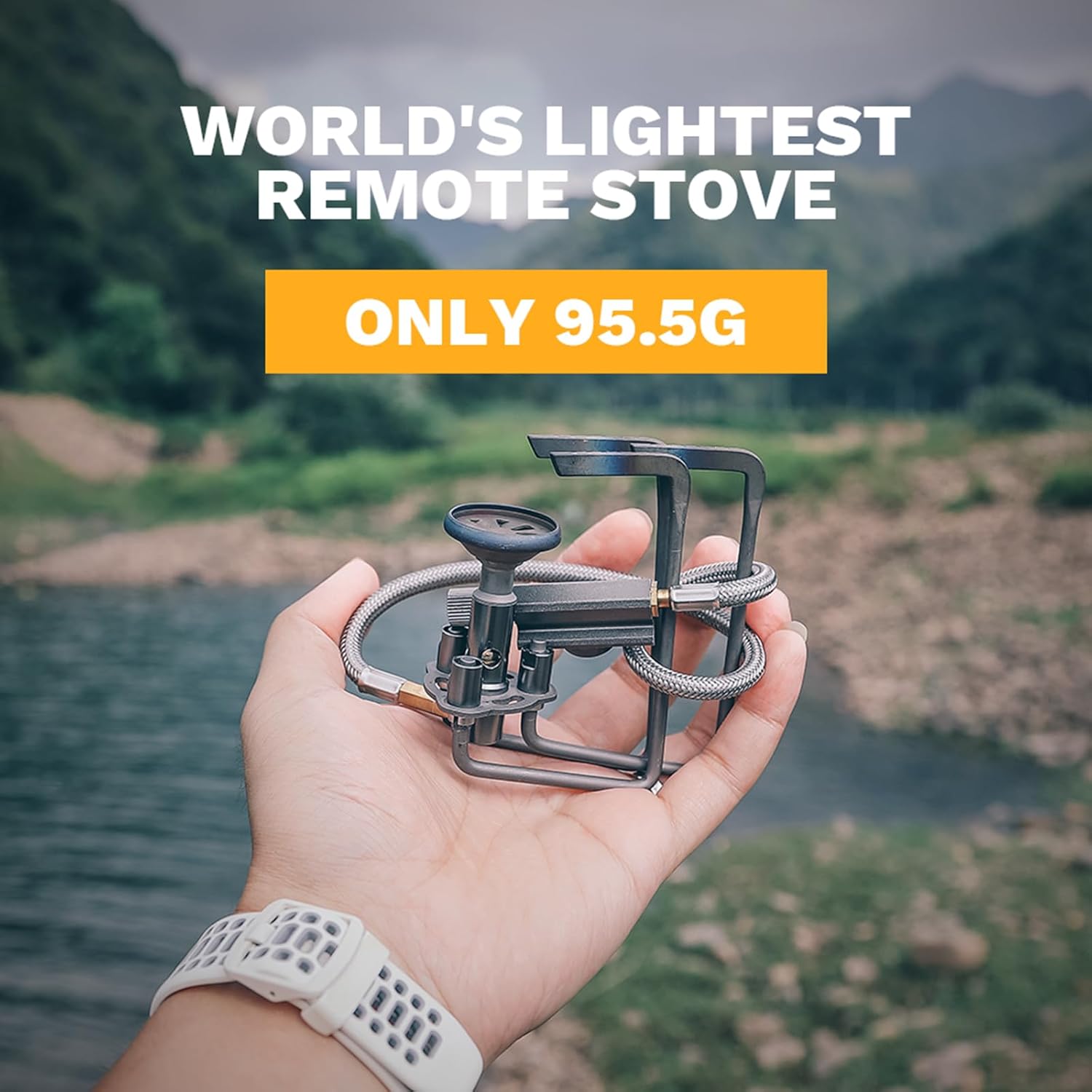 Ultra-Lightweight & Compact Design – Weighs only 95.5g (3.4oz) and folds to 3.7 x 3.4 x 1.3 inches, making it the lightest remote stove in the world. Perfect for ultralight backpacking, fast-packing, and minimalist trips where every ounce counts.
