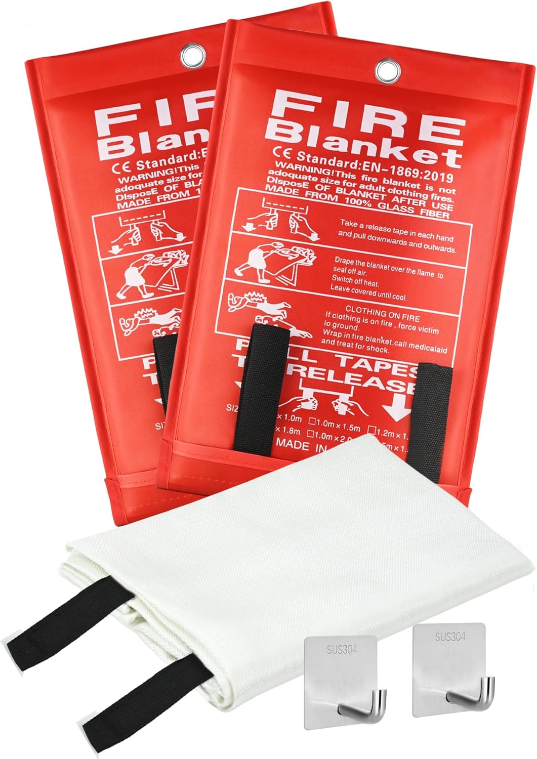 High-Temperature Resistant Fireproof Blanket: Crafted from multiple layers of high-density fire-resistant fiberglass fabric, this fire safety blanket withstands temperatures up to 1076°F (580°C). Quickly isolates oxygen to smother flames. Non-toxic, mess-free, and safe for indoor use — perfect as a home fire safety product.