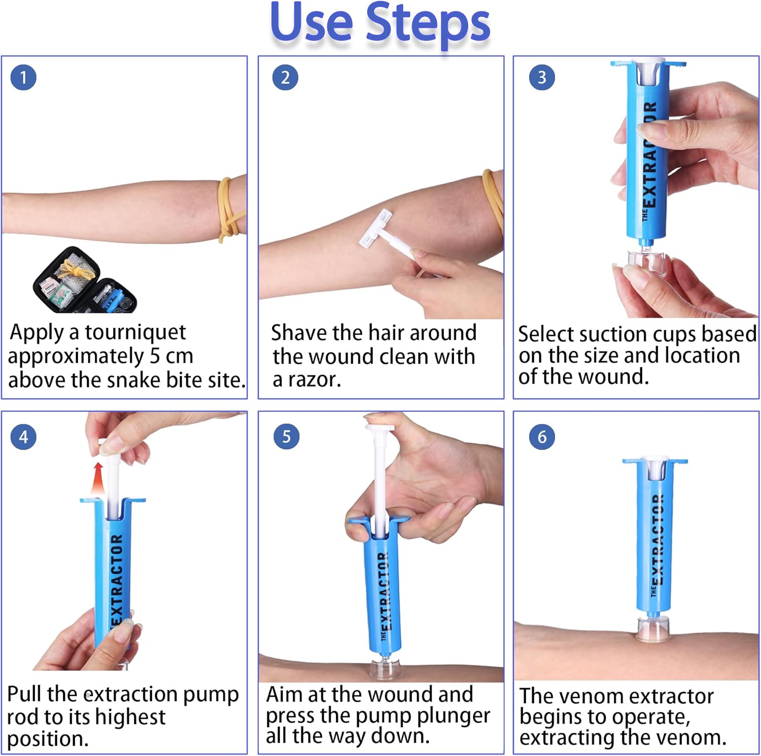 Note: This snake bite kit only slows the spread of toxins to buy time for medical attention. Seek immediate medical care!