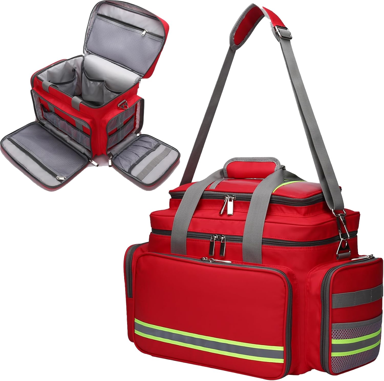 Double-Layer Design: This bag is divided into two compartments, the upper compartment has less space for smaller items and the lower compartment has more space for larger items. Helps to easily organize different medical supplies as needed.