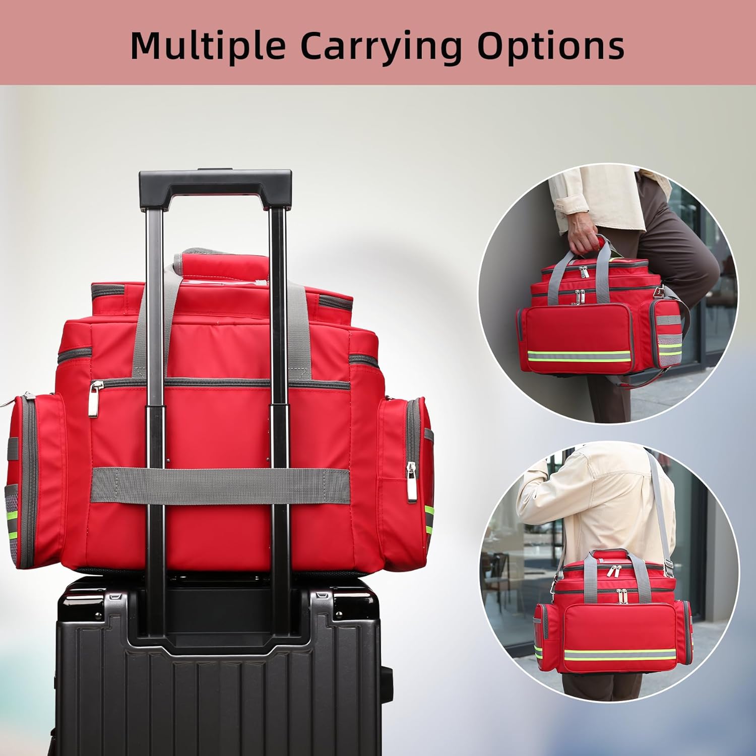 Medical Organizer Bag : Size:21.65 x 17.72 x 13.78 inch, enough space for you to store daily first aid supplies. Made of heavy-duty and tear-resistant nylon with padded PE foam liner, well stitches, strong zippers, no-slip feet, reflective strips. Offer well protection for your first aid supplies.
