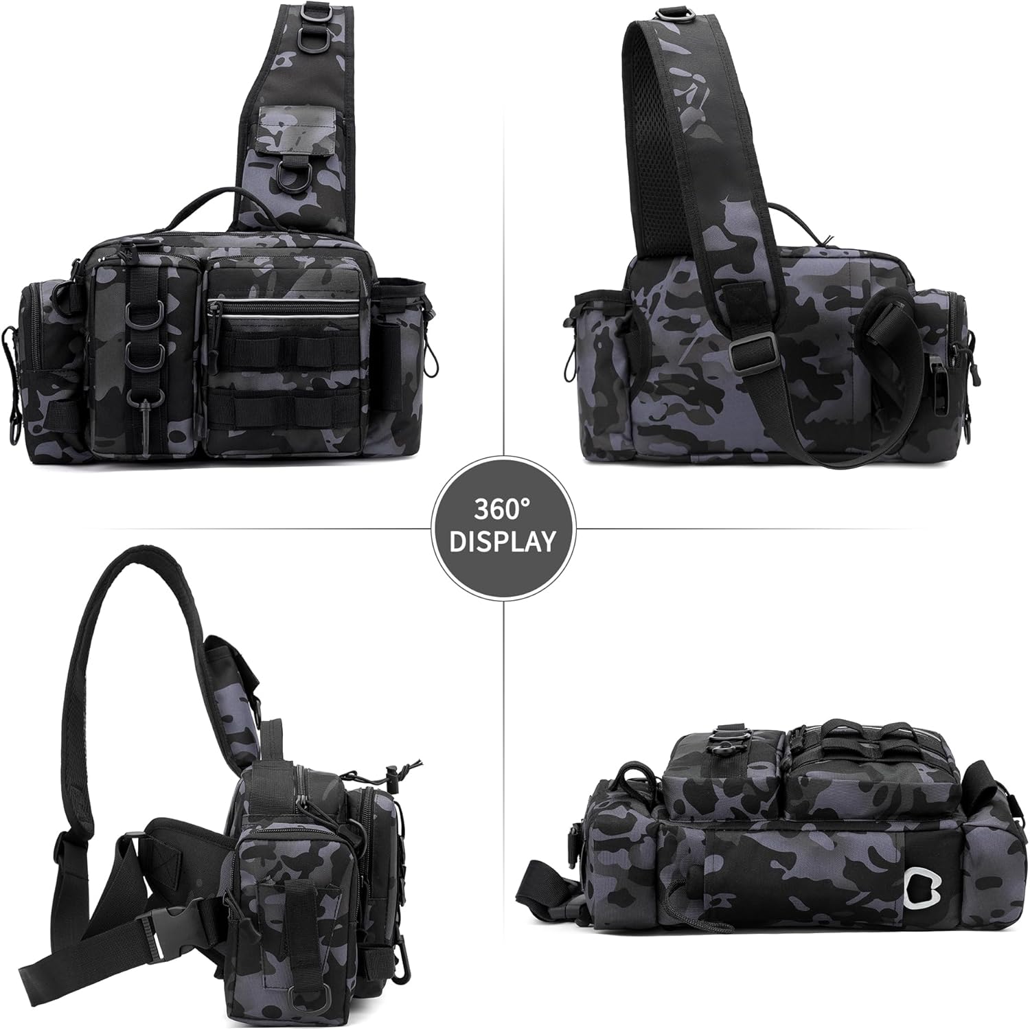 【Waterproof & Durable】 Made of 600D water-resistant oxford, this tackle bag withstands harsh outdoor conditions, protecting your fishing essentials from rain and splashes