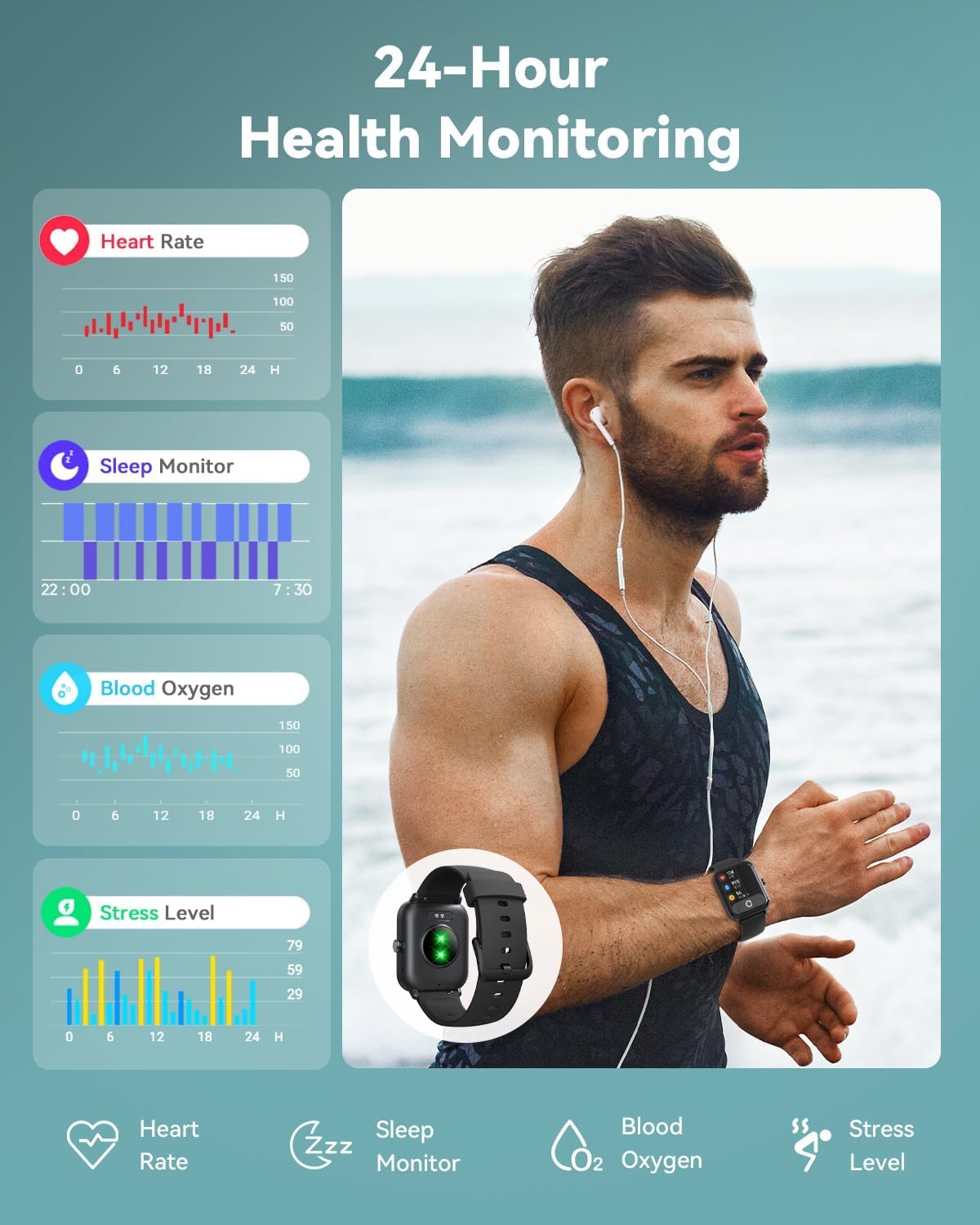 【Wide Compatibility & Long-Battery Life】Smart watch for android phones with Android 6.0 or above,smart watch for iphone compatible with iOS 9.0 and above.Including but not limited to 6/7/8/9/10/11/12/13/14/15/16 series, Sa-ms-ung, Goo-gle, Nexus, Microsoft, Motorola, Huawei, Xiaomi HTC and More.This Android smart watch can be fully charged in just 2.5 hours and can last for 7 days of normal use and 30 days of standby.