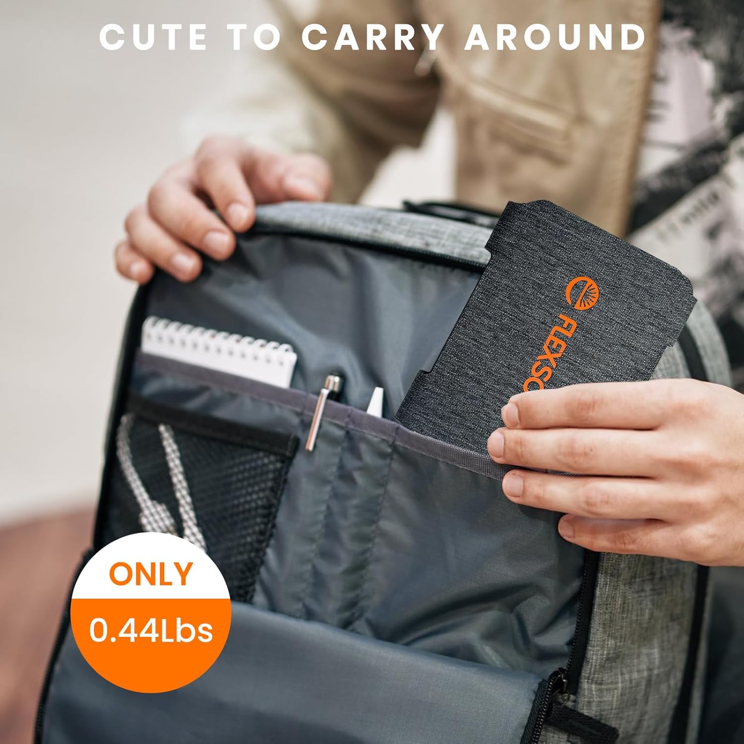 Portable Solar Chargers:The unfold size is 19.4 x 6.3 x 0.5 inch and 3 fold design with a small size of 6.3 x 4.8 x 1 inch (when folded) which is similar size with iPad9 2021 version of 12.9 inches ,only0.44bls (200g) and comes with 2 Carabiners that can be easily squeezed into your backpack, also hung in backpacks and tents. FlexSolar 15W solar charger offers portability and simplicity for your travel,hiking, camping and backpacking.