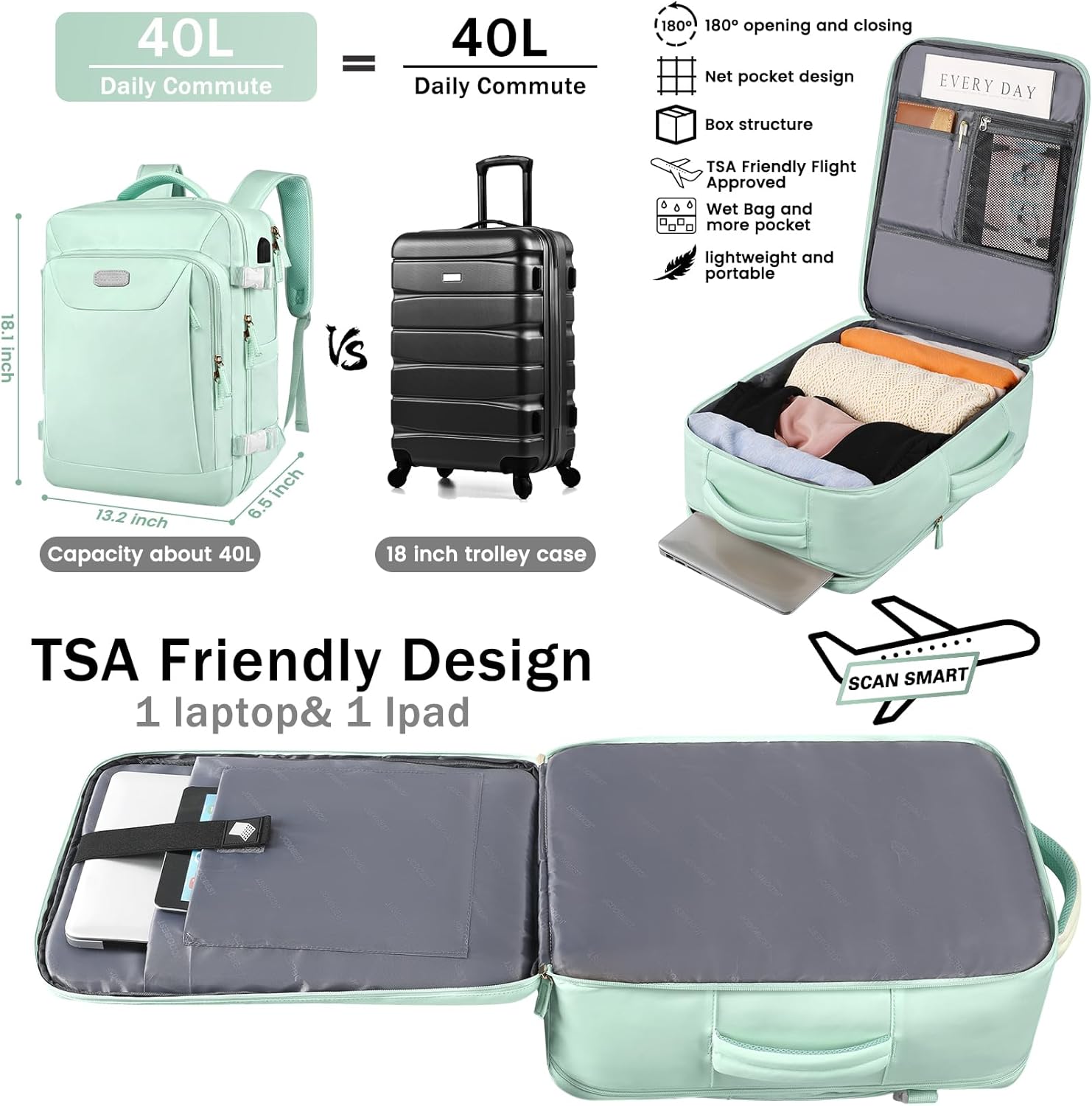✈【Large Capacity&Multiple Pockets】: The travel backpack has a 40L large capacity and 4 main compartments, which can meet daily and travel needs. Meet the travel needs of 3-5 days.