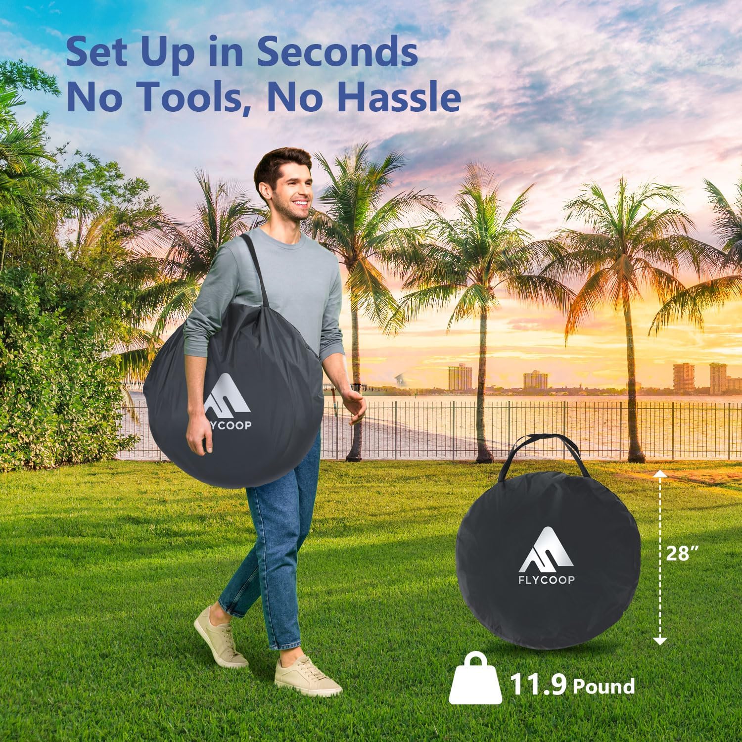 Instant Setup: The sports tent unfolds automatically in 1 second and includes an elastic safety band for added security. After removing the band, pop up pod opens by itself. || Storage: Packs away with detailed instructions. After folding, secure with the elastic band. For questions during storage, contact customer support.