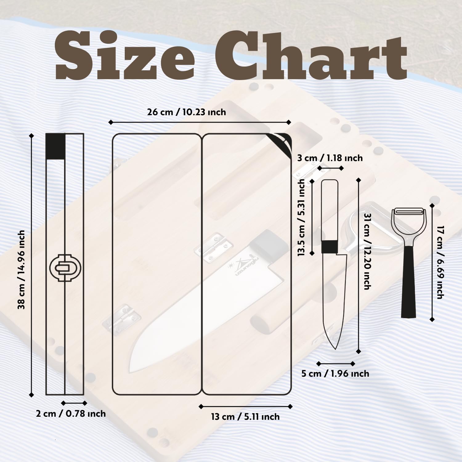 The Uzunoglu Foldable Cutting Board Set is designed for those who love practicality, functionality, and versatility in their daily lives. Whether you are preparing meals at home, organizing a picnic, going camping, or traveling, this compact and durable set provides everything you need in one place. With its foldable structure and portable design, it ensures easy transportation and convenient storage without taking up unnecessary space. Unlike ordinary cutting boards, it comes with a protective carrying case that not only keeps the set safe from external factors but also makes it easy to carry thanks to its practical handles.