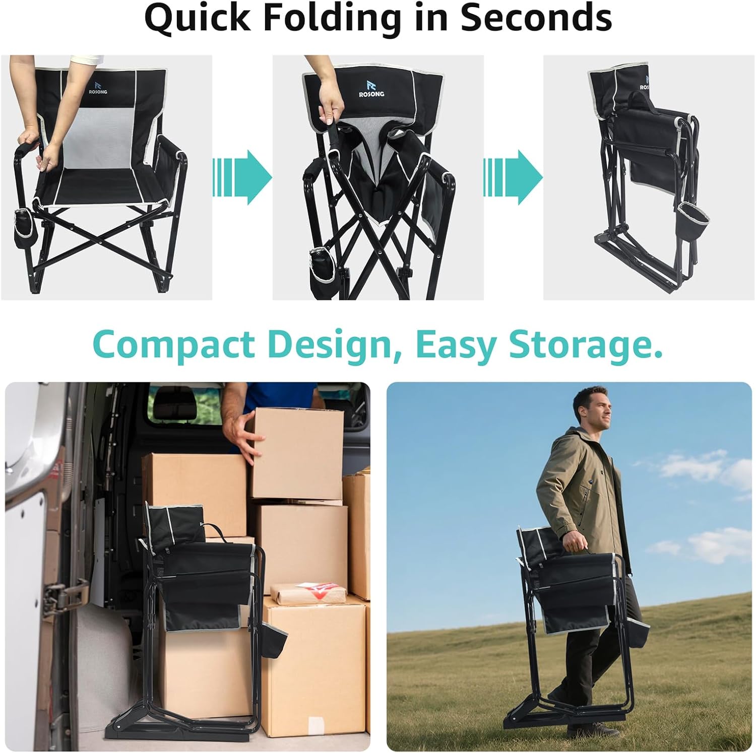 Patented Rocking Technology: Experience smooth, fluid rocking on any outdoor surface with our exclusive design-perfect for campsites, patios, or sporting events, offering unmatched comfort and relaxation anywhere you go