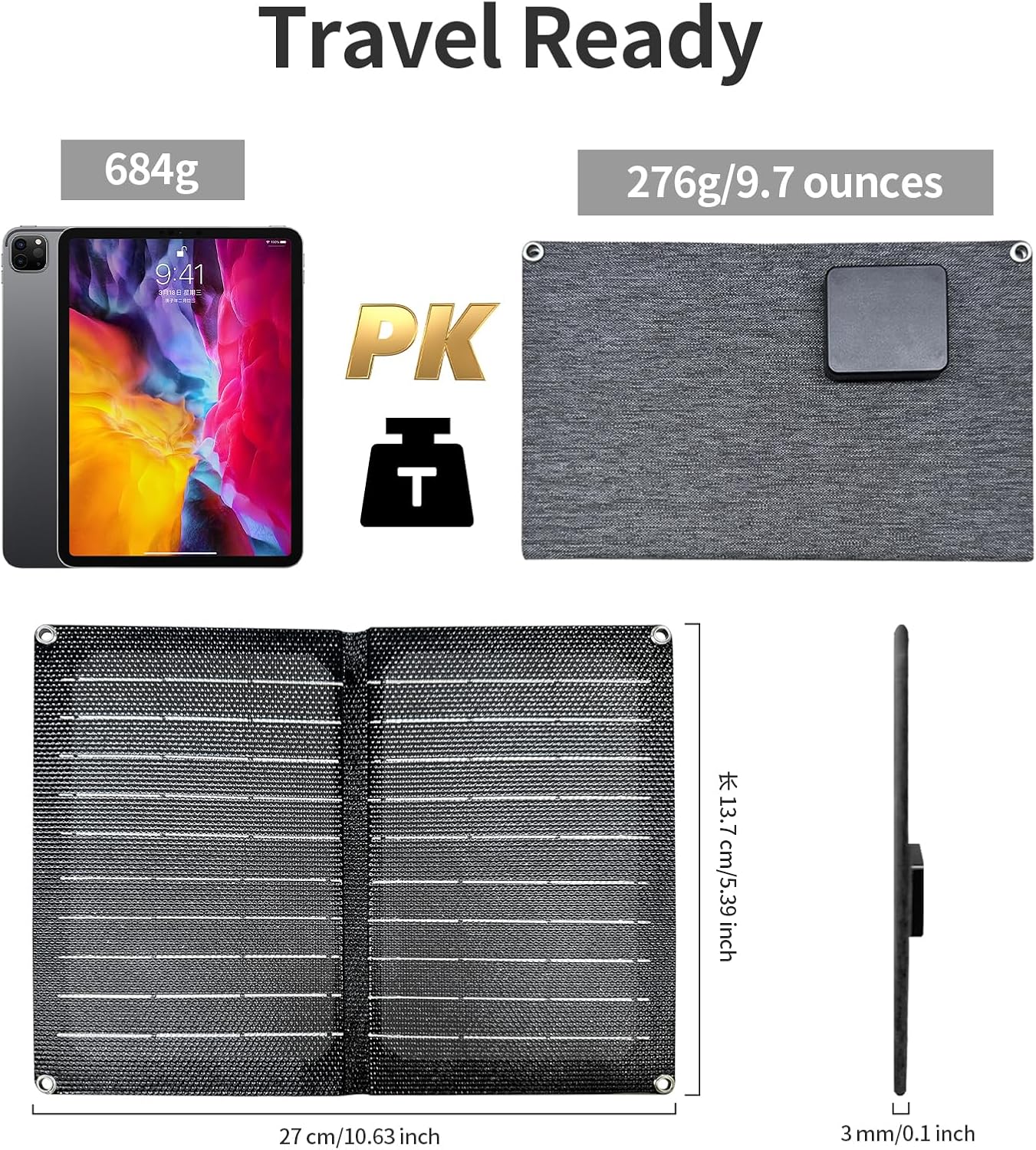 【Wide Device Compatibility】Equipped with both USB-A and USB-C outputs, this solar charger is compatible with a wide range of devices including smartphones, tablets, GPS units, and power banks. Pair it with the DJKK solar power bank for ultimate convenience.