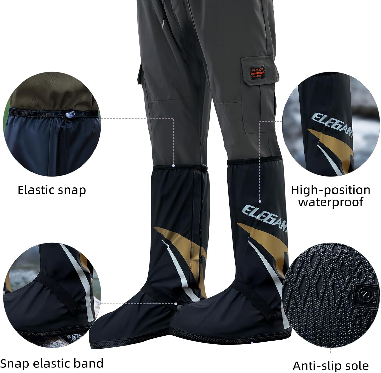 【Premium Waterproof Protection】Crafted with premium thickened PVC material, these rain boot shoe covers provide all-angle protection against rain, snow, mud, and dust. Double-sealed zipper design ensures no water penetration, keeping your shoes dry in any weather.