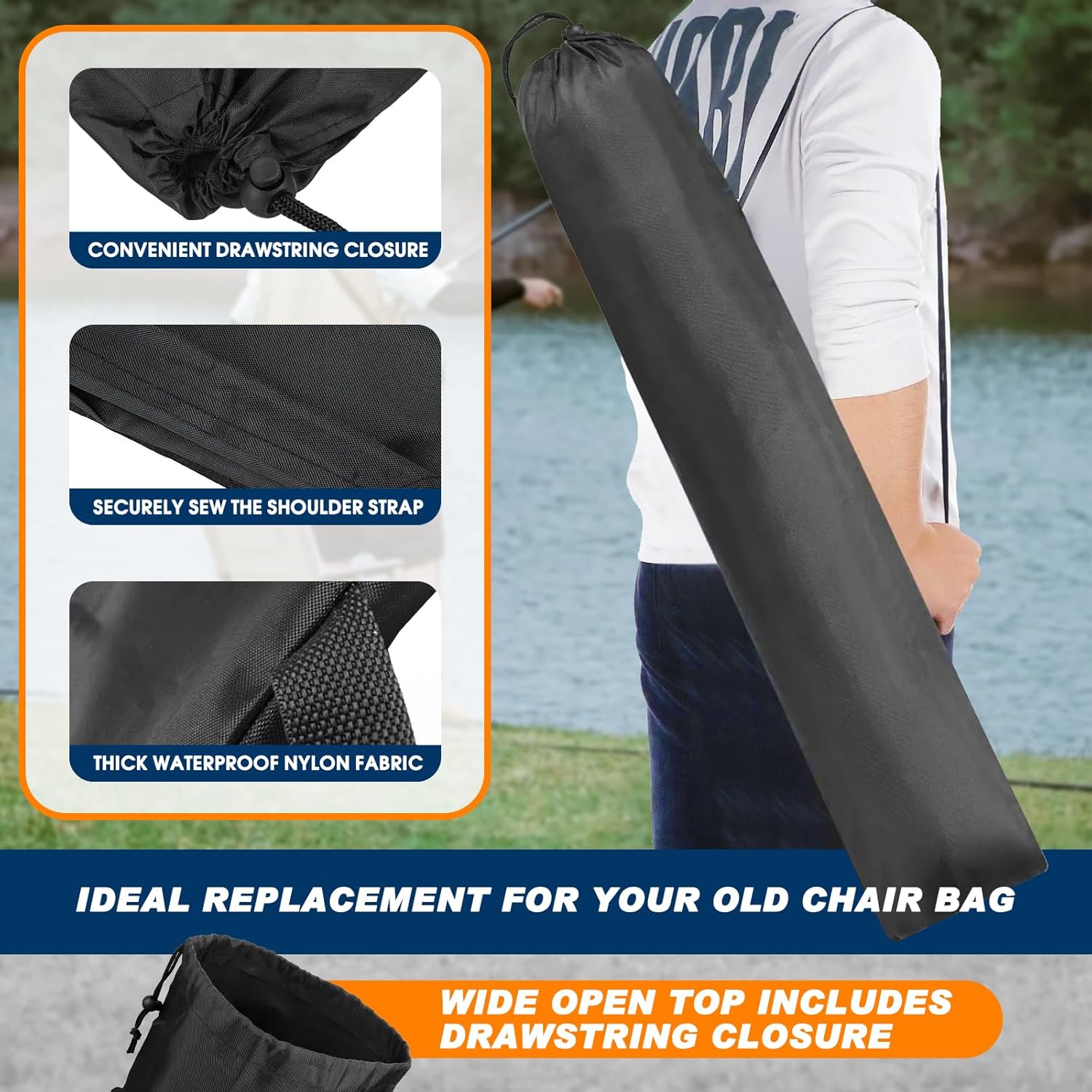 A practical camping chair replacement carry bag for traveling, camping, hiking and various outdoor activities.
