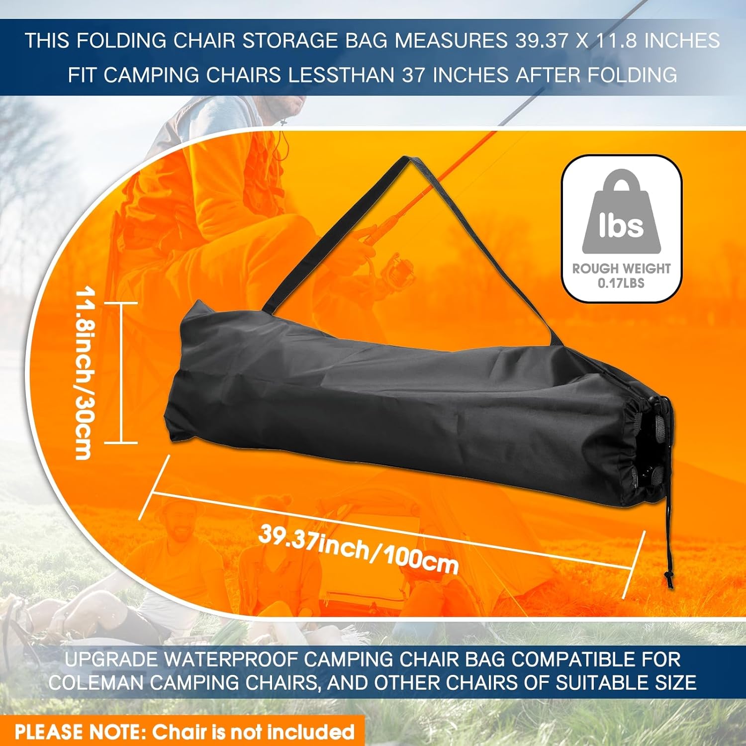 Measuring 39.37″ x 11.8″, Designed to hold folded chairs under 37 inches, this camp chair replacement bag is fit for camping chair bag replacement needs.
