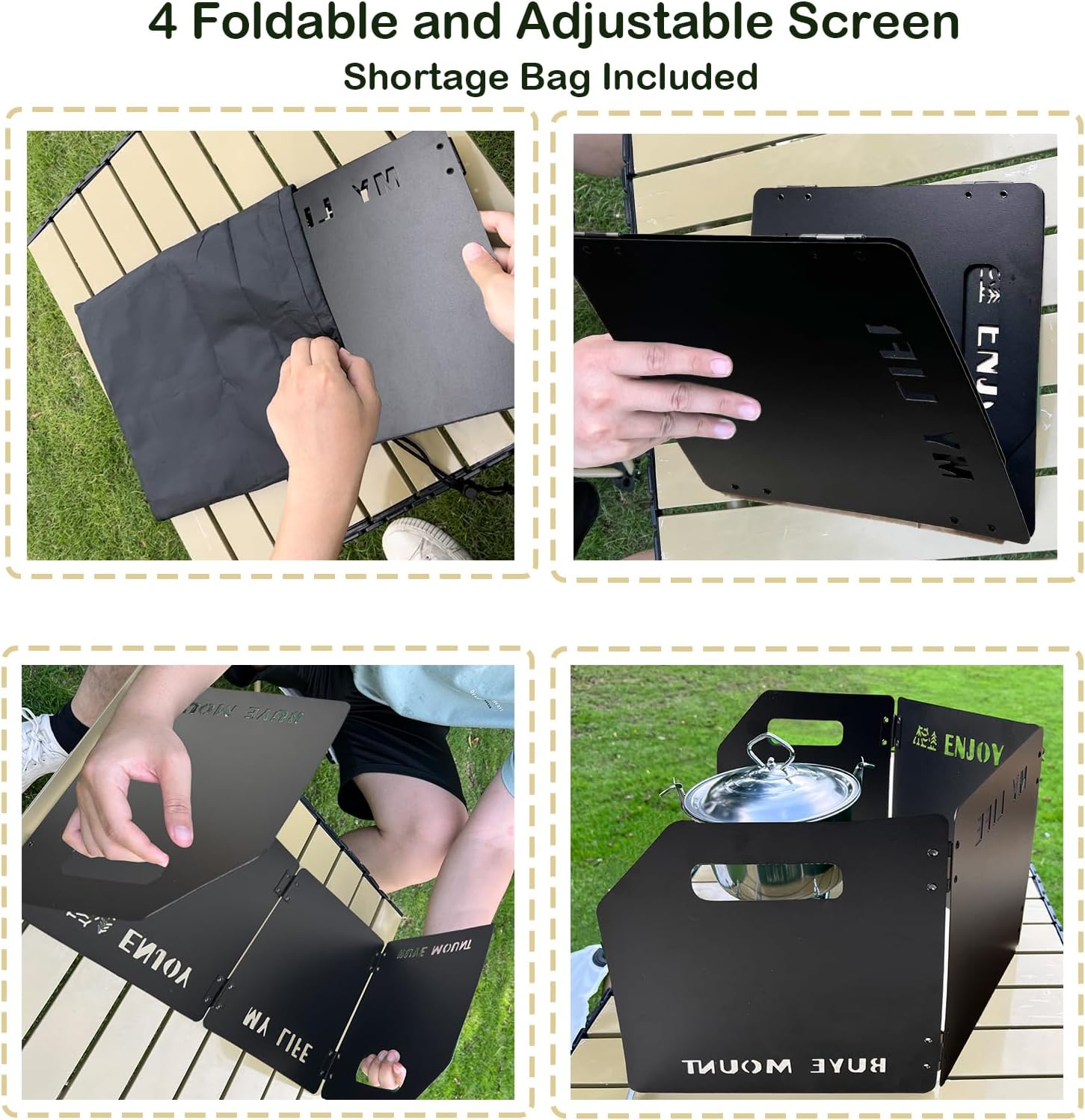 Foldable and Portable: The windscreen is designed to be foldable, making it extremely compact and easy to carry. It conveniently fits into your backpack or camping gear, taking up minimal space while ensuring you have wind protection whenever you need it.