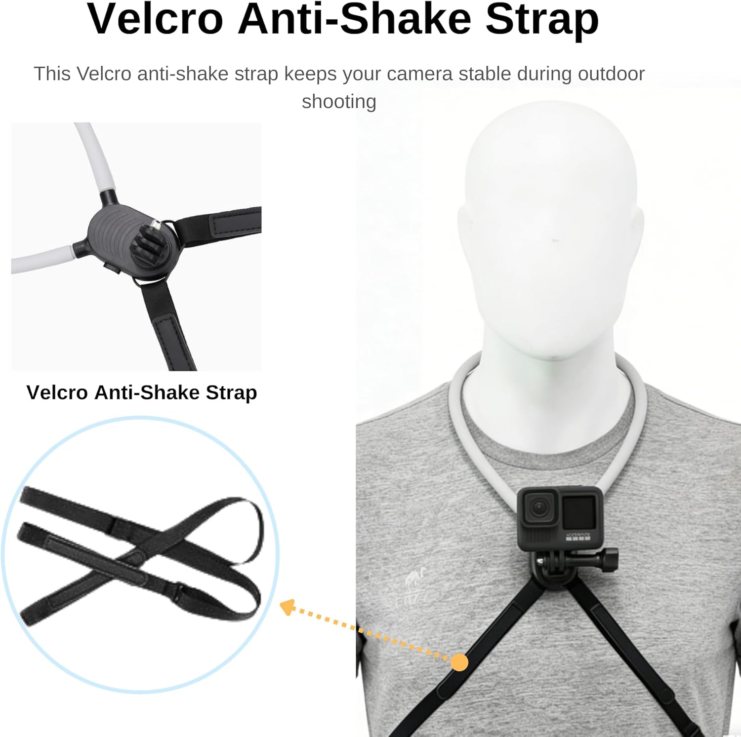 Hands-Free & Stable Shooting: High-elastic anti-shake straps & stable neck support reduce shake; capture smooth FPP footage for cycling, hiking, vlogging without holding