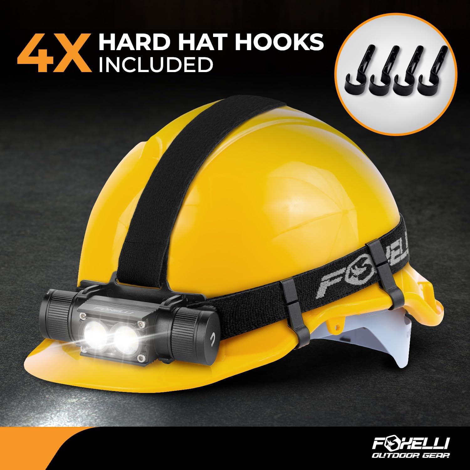 Hard Hat Ready with Hooks & Lightweight Design. Securely attach to any helmet with 4 included clips. Compact and comfortable for all-day use. Combines bright illumination, long-lasting 18650 battery, and reliable hard hat compatibility.