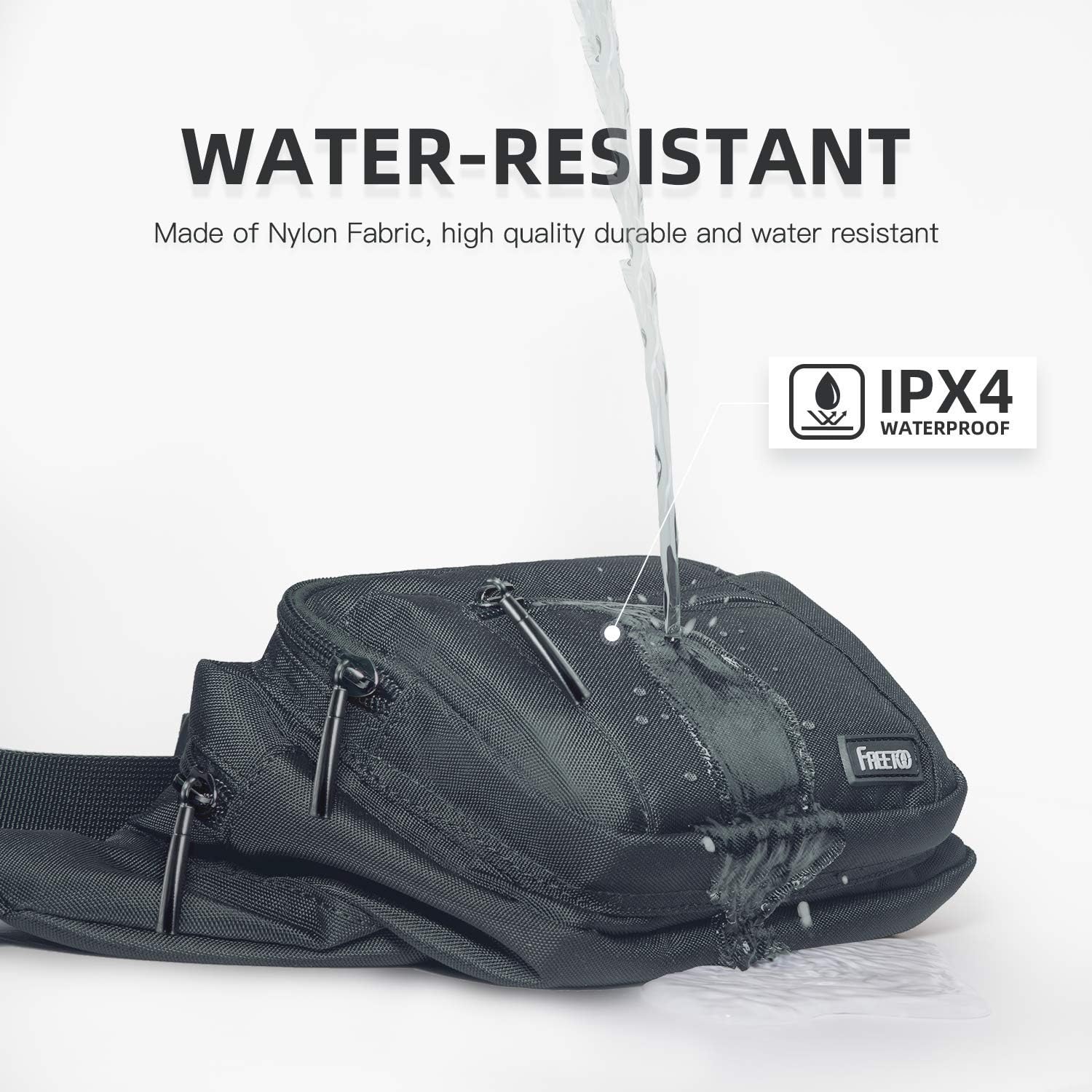【AMPLE ROOM, KEEP ORGANIZED】- FREETOO black fanny pack is well-constructed with 5 separate zippered pockets of different sizes for all your needs. The largest pocket can easily hold a standard water bottle (16oz); A small hidden zipper compartment inside the main pocket is perfect for your valuables for extra security; A flat zippered exterior pocket is located behind the waistband, against your body. Provides spacious storage and helps keep you organized while maintaining a slim profile.