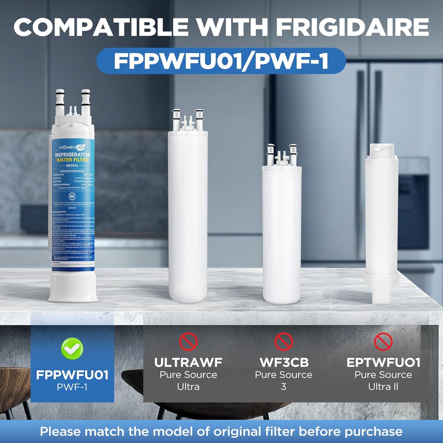 EASY SETUP, PERFECT FIT- With no tools required, you can install our filter effortlessly in minutes! It’s perfectly compatible with your Frigidaire which uses FPPWFU01, EPPWFU01, PWF-1 water filter.