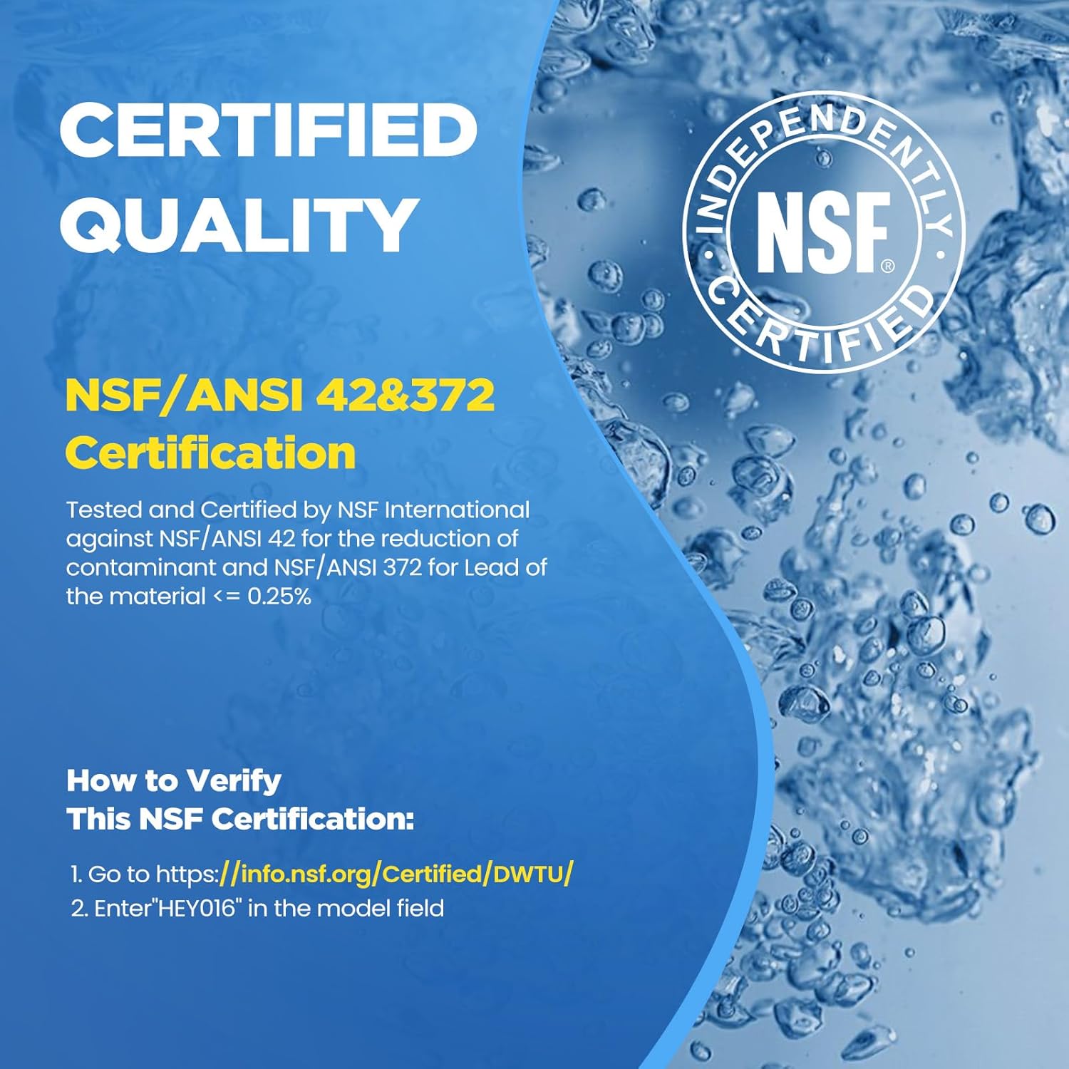 CERTIFICATED CRAFT, RELIABLE QUALITY – The filter replacement is made of food-grade material without BPA and has the verified effect under NSF/ANSI 42. It’s also tested against NSF/ANSI 372 for lead of the material less than 0.25%, for which you can confidently choose this filter, knowing it’s safe and trustable for your use.