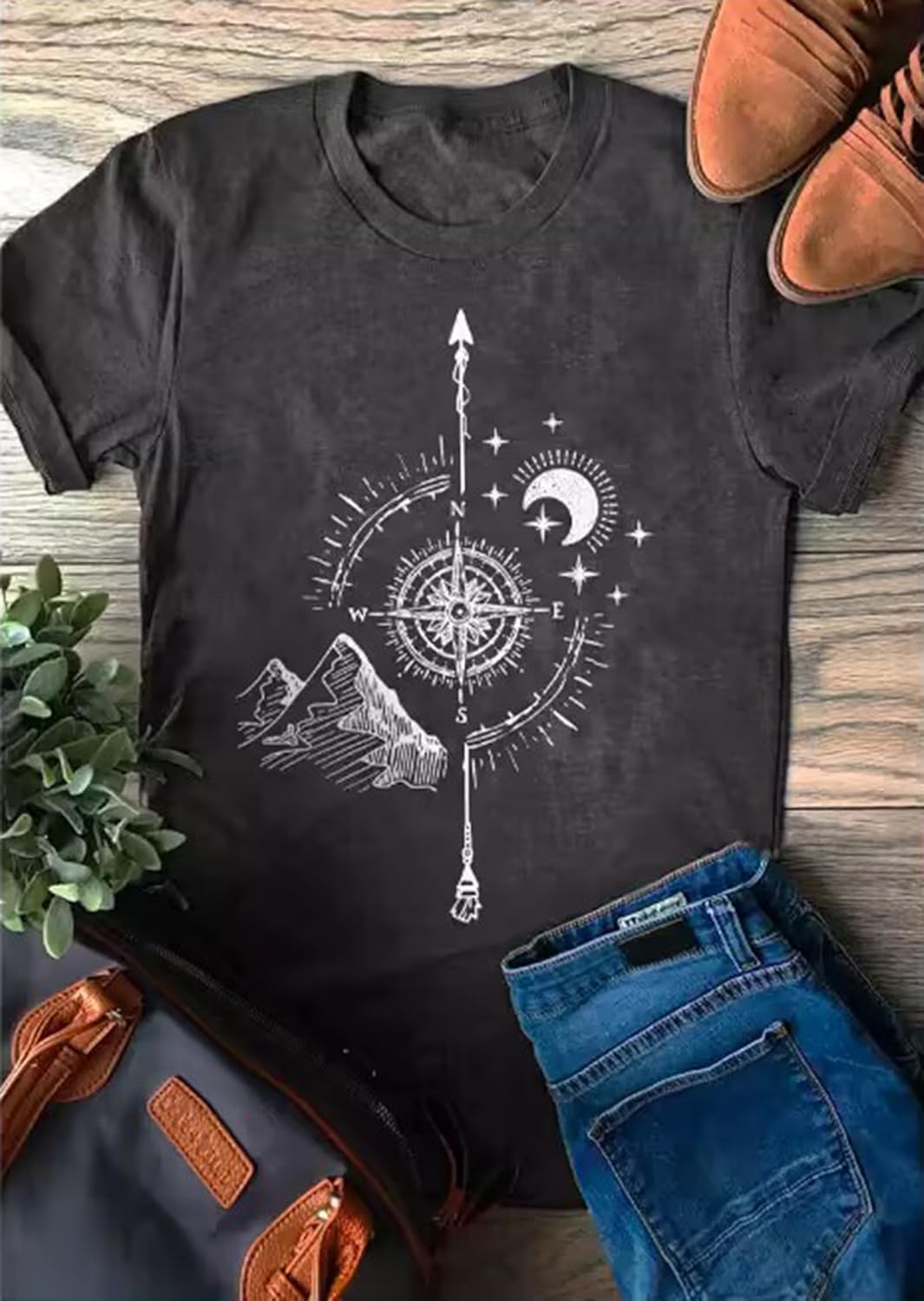 ★Pattern: Summer Hiking Camping T-Shirt for Women, Womens Climbing Graphic Tees, Sport Short Sleeve Shirts for Women, Womens Outdoor Mountain Moon Compass Print Shirts, Casual Short Sleeve Tee Tops.