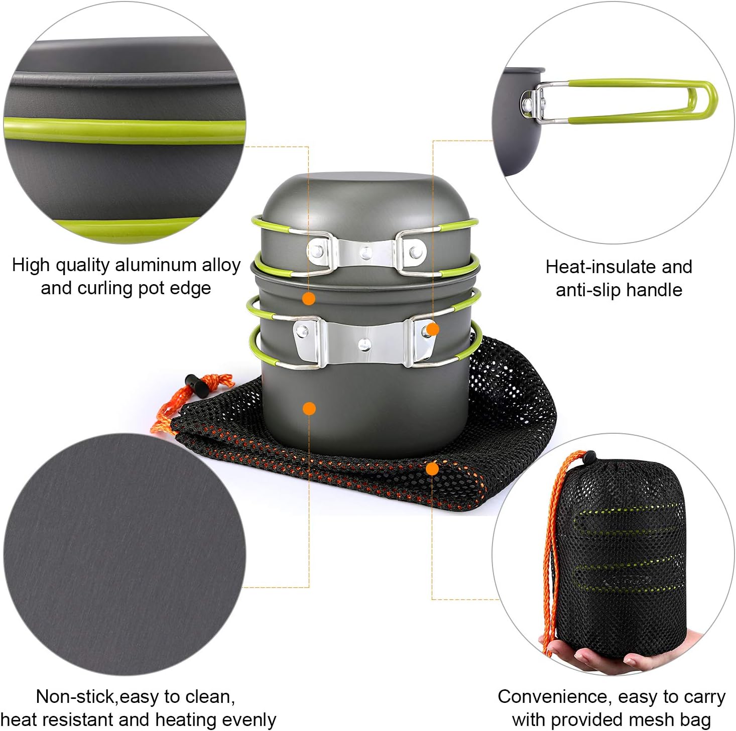Customers find this camping cookware set to be of good quality, compact, and lightweight, making it ideal for backpacking. The functionality receives positive feedback, with customers noting that the flame piece works nicely and it’s great for one person. They appreciate its value for money and find it easy to clean, with one customer mentioning it’s convenient to use and store. Regarding durability, while some customers say it holds up well, others report that the handles melt during use.